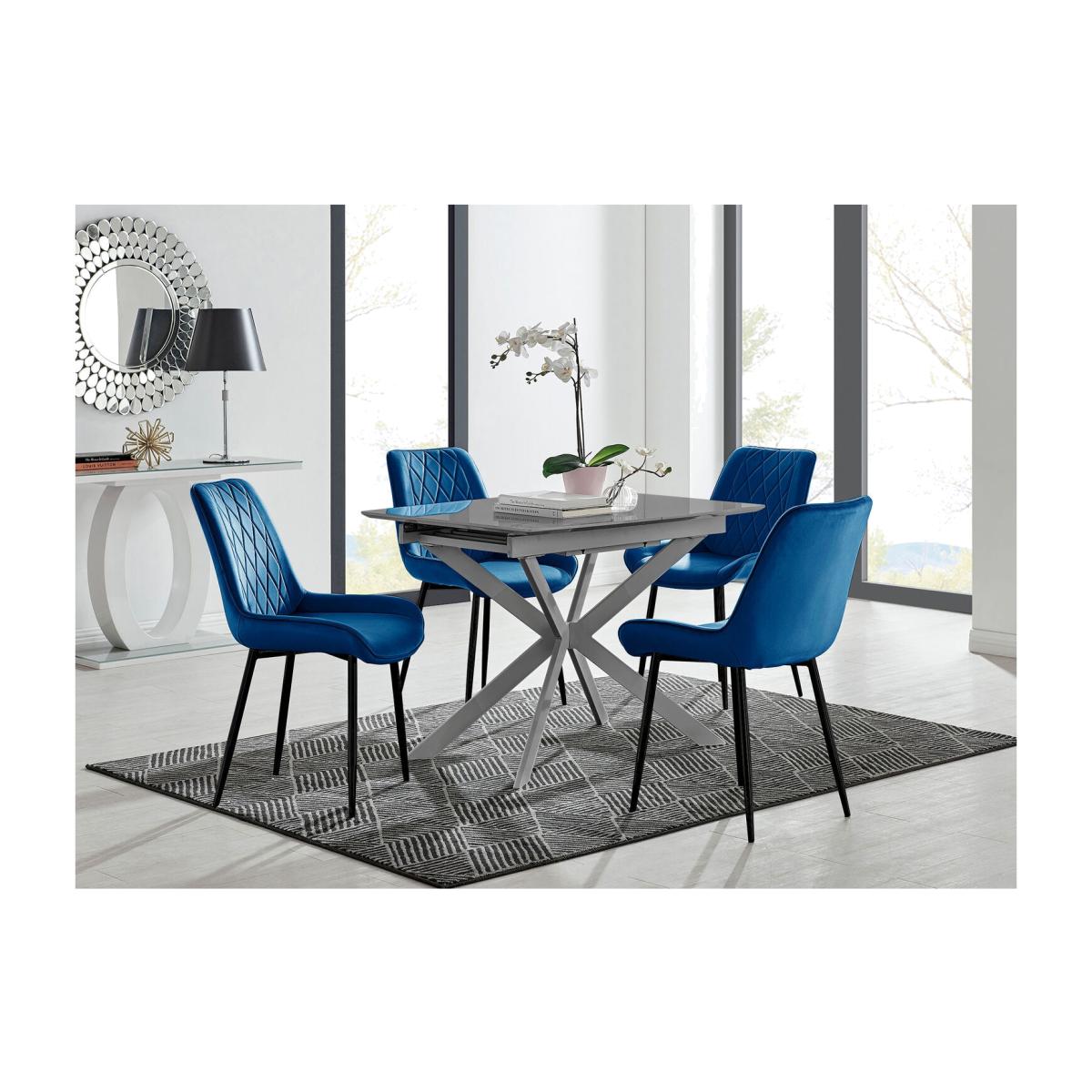 The Lira 6 seater table is the perfect solution for the adaptable modern home. Extending effortlessly from 120cms to 160cms and with a family-friendly wipe-clean high gloss surface, you'll be hard-pressed to find a more stylish and versatile dining table. The four grey burst legs add an element of luxury and are cleverly positioned to accommodate the extending element for extra chairs. The table-top separates on a smooth sliding mechanism with the extension piece concealed under the top, lifting out easily to unfold and create the additional length in the extended table. Modernise your dining area with our luxurious velvet upholstered Pesaro Dining Chairs. With a nod to the Mid-century modern design era, the Pesaro features gorgeous textured diamond stitching with an ergonomically designed curved seat pad blending seamlessly to the supporting medium high back rest. Sat atop elegant slightly tapered legs in black, chrome or gold effect. The Pesaro is a perfect match to any dining table or use as a luxe vanity seat in the bedroom, as an occasional chair for the living area or to add a bit of luxury to your home office.