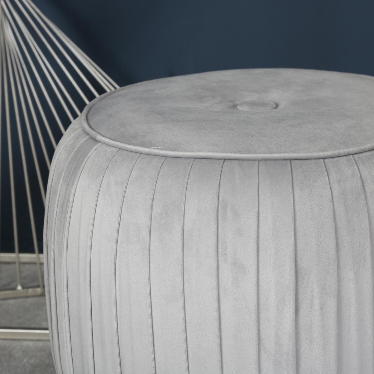 Lisa Round Pleated Wide Stool - Grey