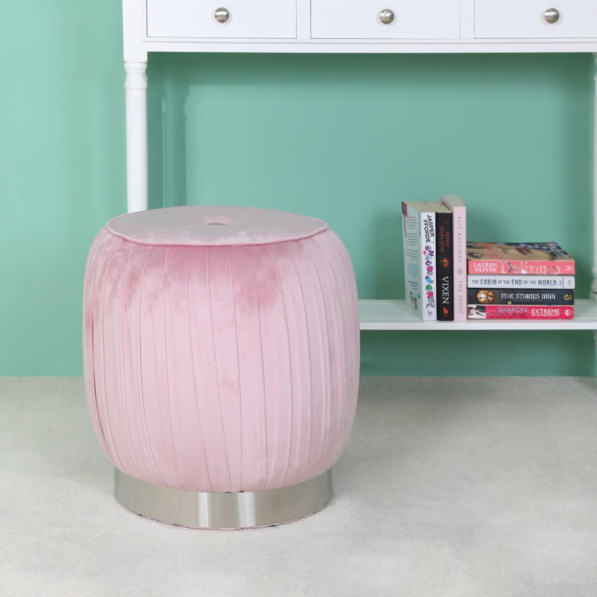 I love this pink stool for its contemporary, soft silhouette and versatile styling potential. Its round, pleated design lends a subtle texture that works well in both pared-back and more eclectic interiors. It’s great as a statement piece in a neutral living room or as a playful addition to a feminine dressing area. Practical styling tips include pairing it with an upholstered armchair for a cosy nook or using it as a side table with a tray on top for drinks and decor. It’s especially effective in spaces where you want to dial up the colour without overpowering the overall scheme.