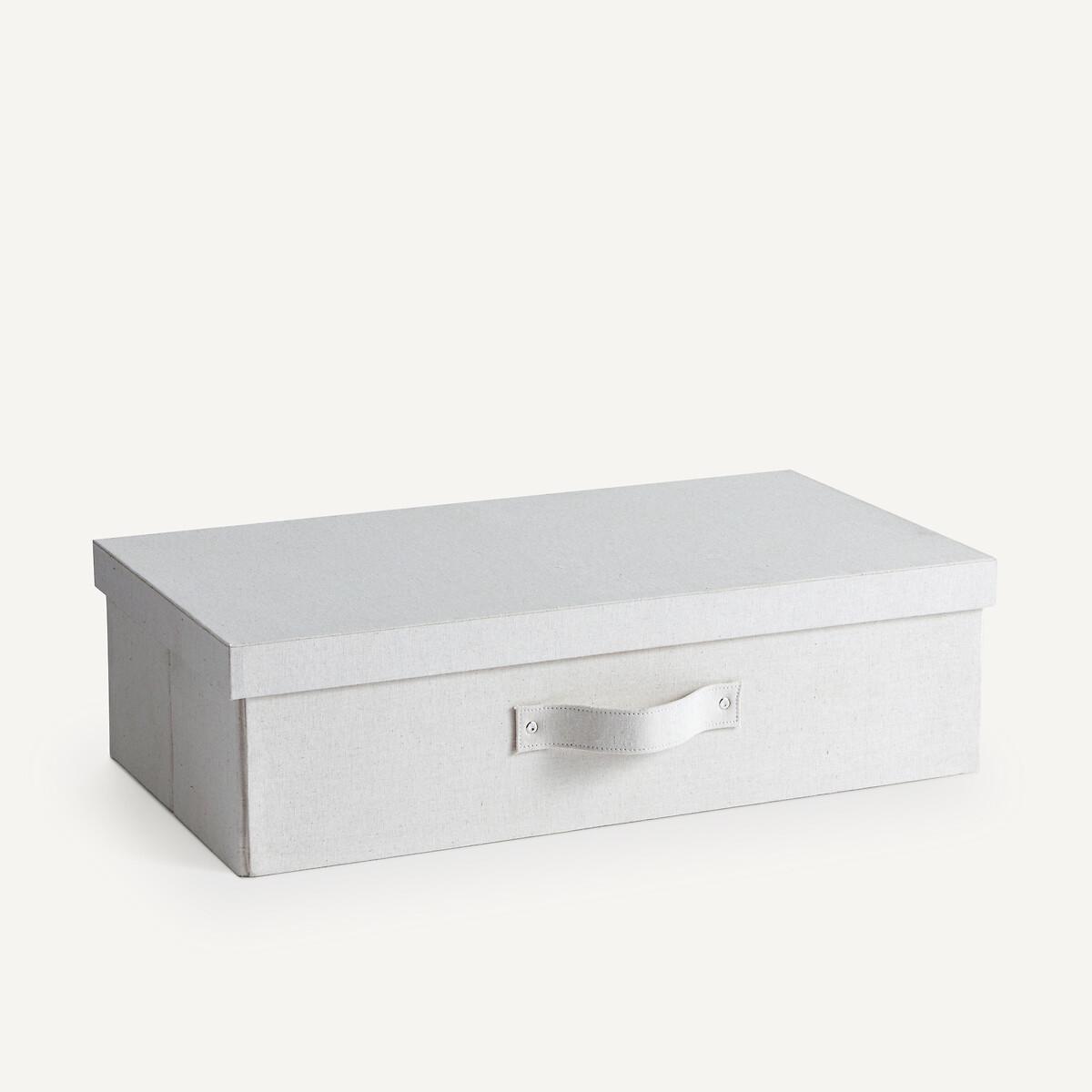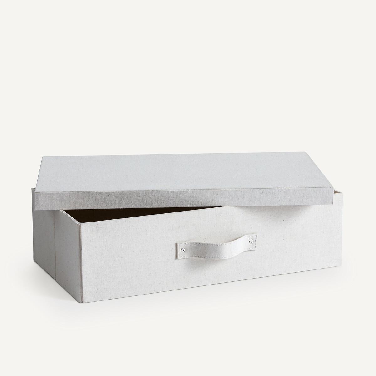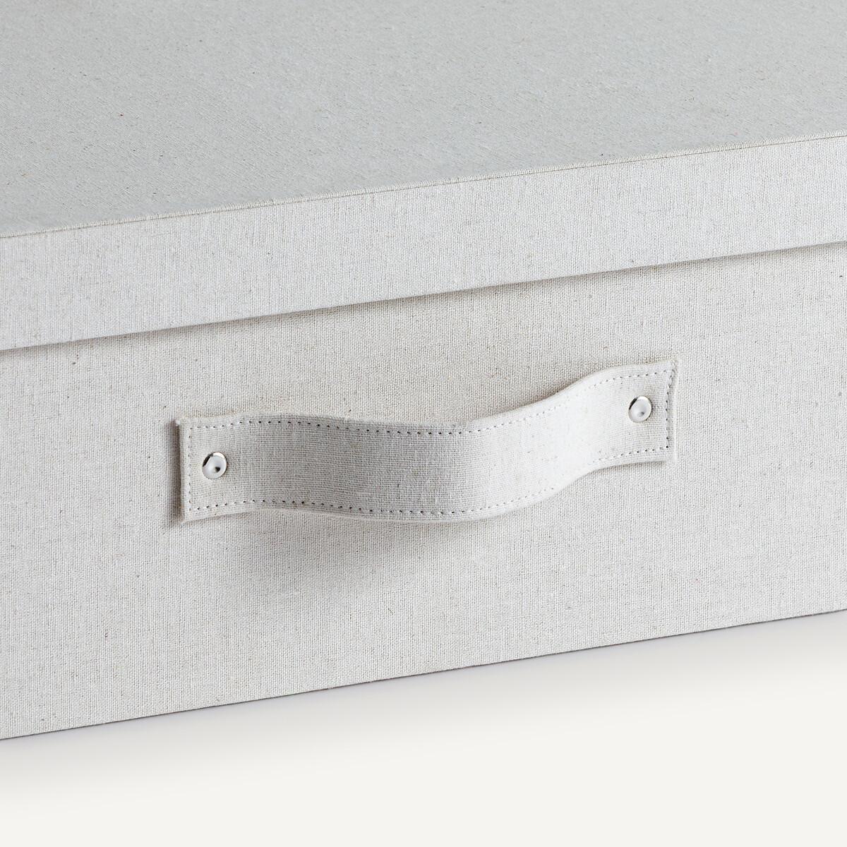 I love this linen storage box for its clean, understated design which makes it versatile across various interior styles, from Scandi minimalism to vintage-inspired spaces. Its neutral tone and simple handle make it unobtrusive, perfect for hiding away bedding, throws, or even craft supplies. Practical styling tips include placing it in a streamlined linen closet or using it as a stylish surface organiser in living spaces. It works well when paired with other natural fibres or soft textiles for a cohesive look, and its compact size makes it ideal for tucking into shelves or under beds for easy storage without clutter.