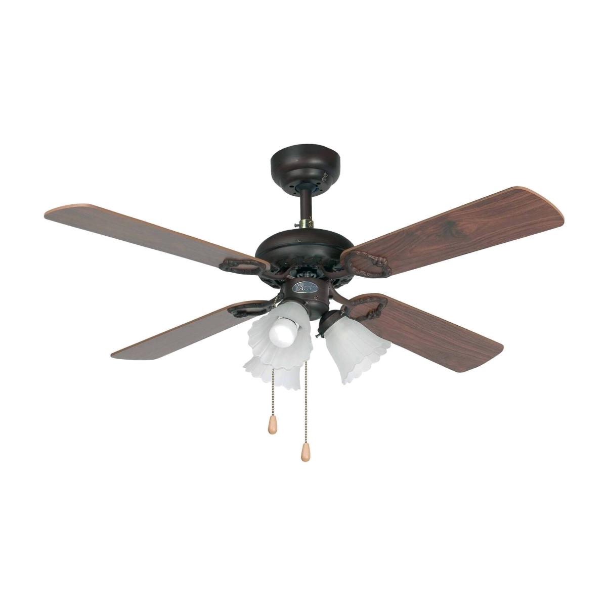 Lisboa 3 Light Small Ceiling Fan Wood, Dark Brown with Light, E27 - Wood