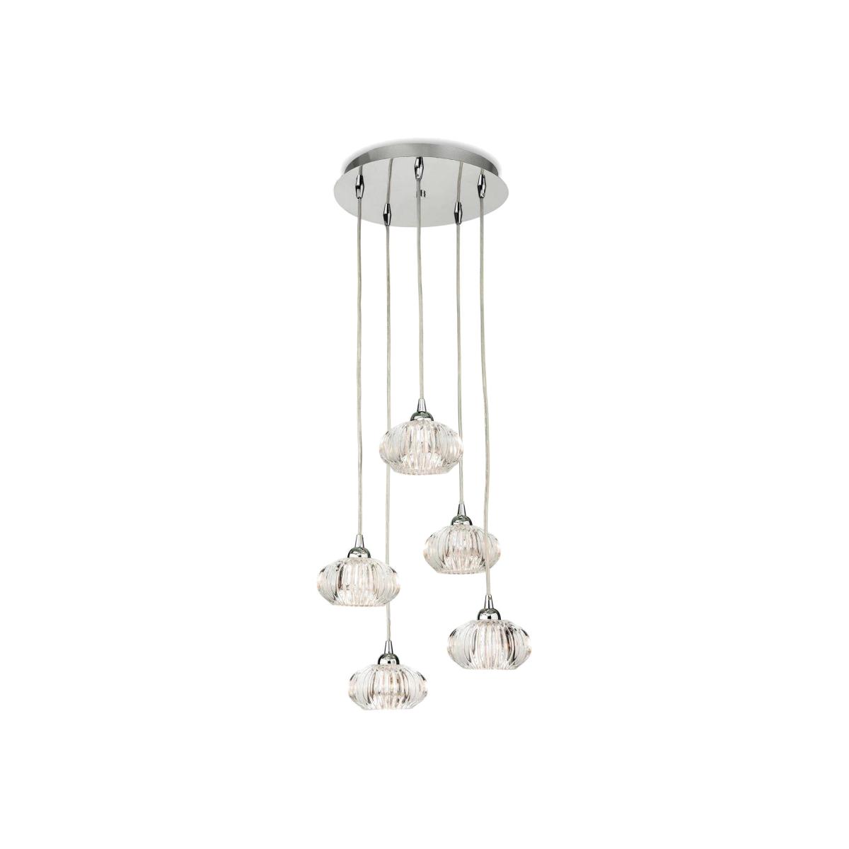 Lisbon 5 Light Cluster Pendant Chrome, Clear Decorative Glass, G9 - Chrome