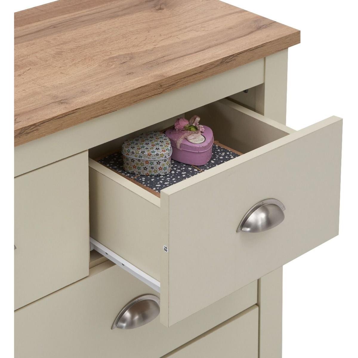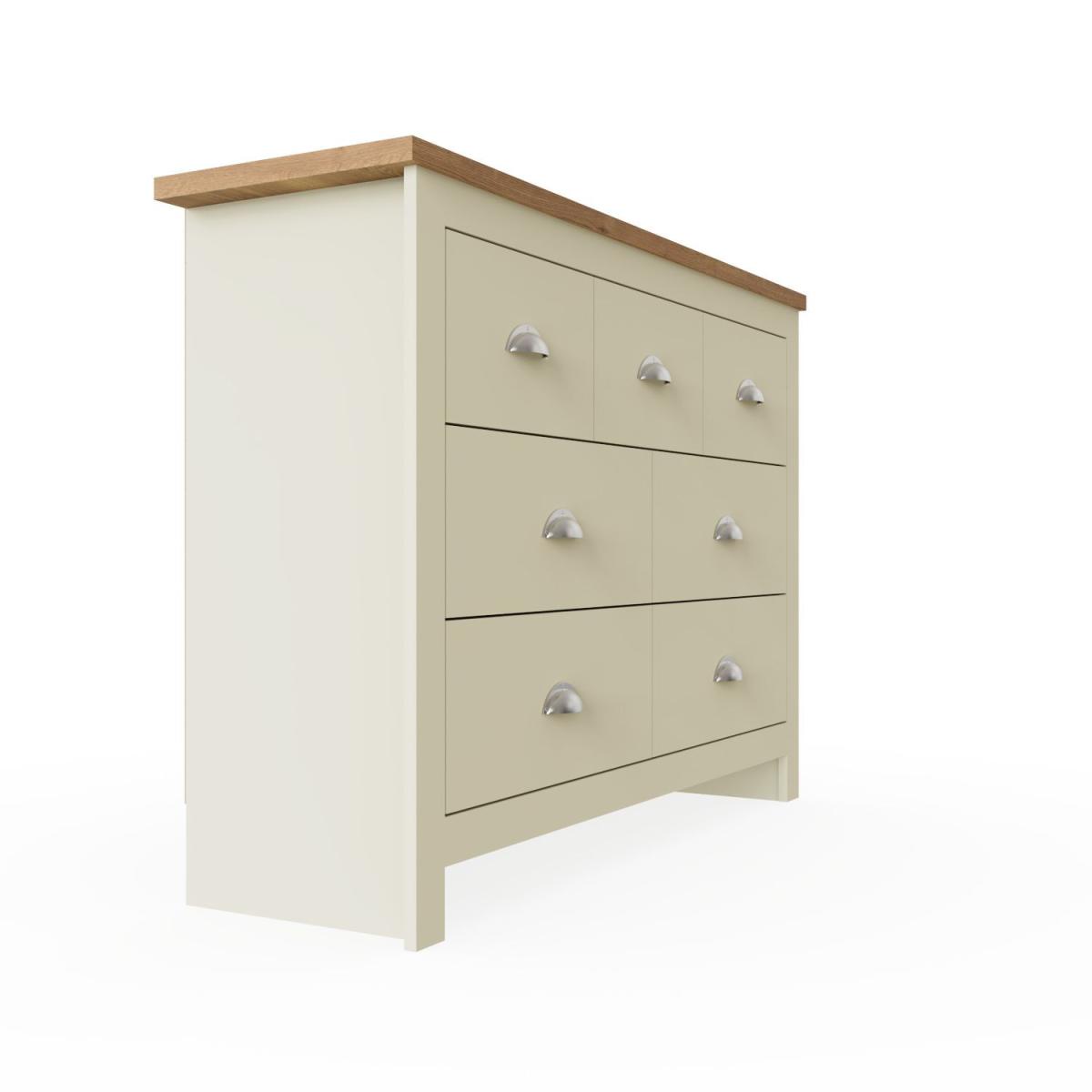 Full of presence, the Lisbon range in Cream and cascading Oak tops fills any room with warmth and comfort. A beautiful stylish chest with 7 drawers, in Cream with brushed steel handles which will bring a touch of class to any room. The diversity of drawer sizes makes it easy to organize and store items regardless of their size.