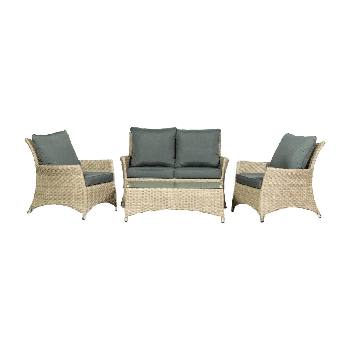 Relax in this stylish Lisbon Deluxe lounge suite complete with 2 seater sofa, 2 lounging armchairs and glass top coffee table. This set is perfect for indoors and out, boasting polyethylene half-round wicker around a rigid aluminium frame and tempered glass table top along with weather shield back and seat cushions. This set is durable and weather resistant for use all year round. The Lisbon range is made from the highest quality polyethylene half-round wicker around a rigid aluminium frame ensuring its strong, durable and beautifully designed.