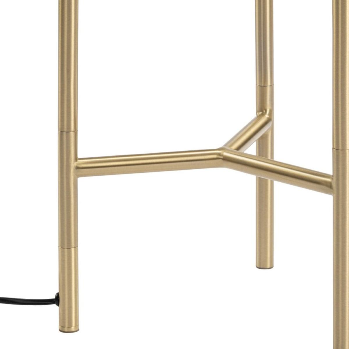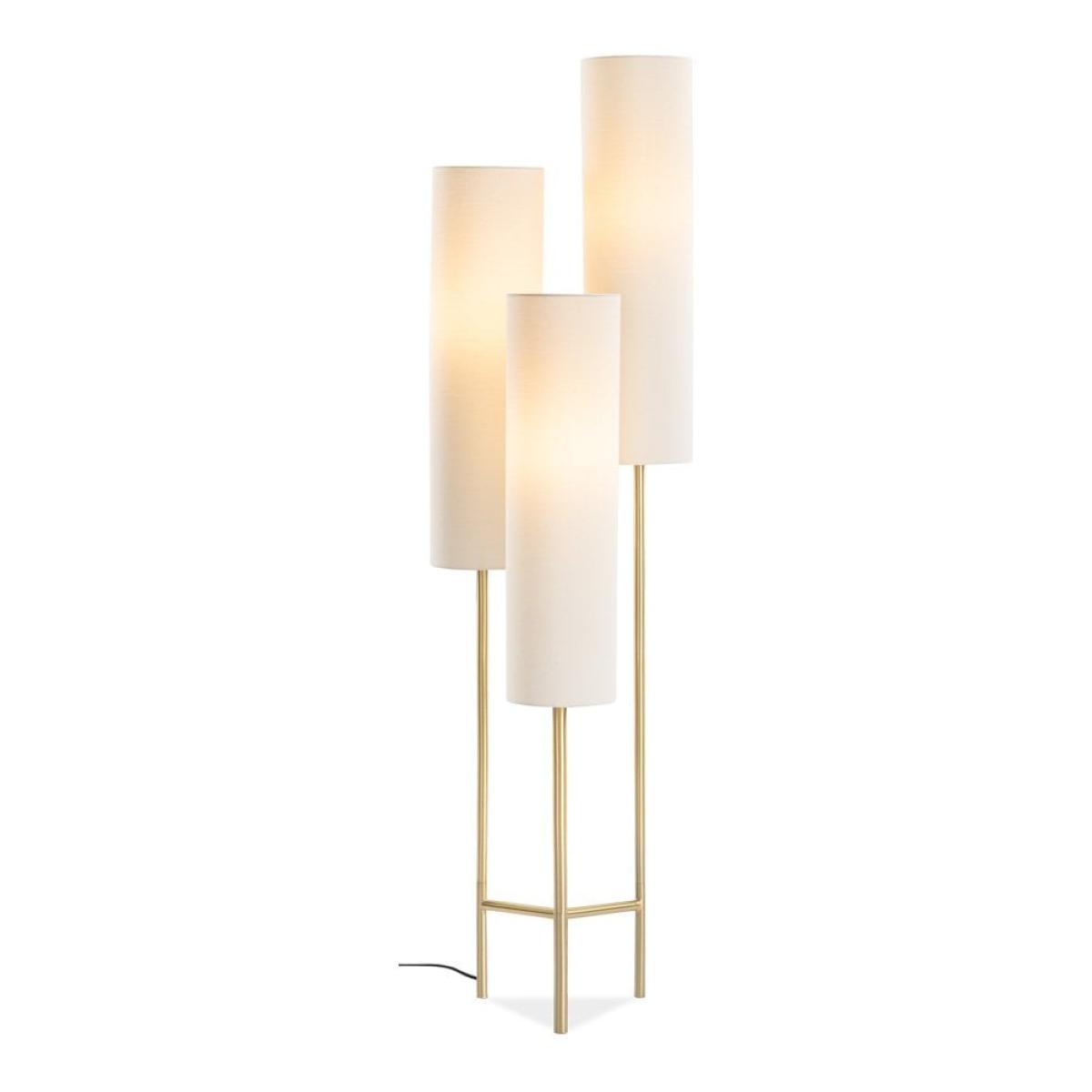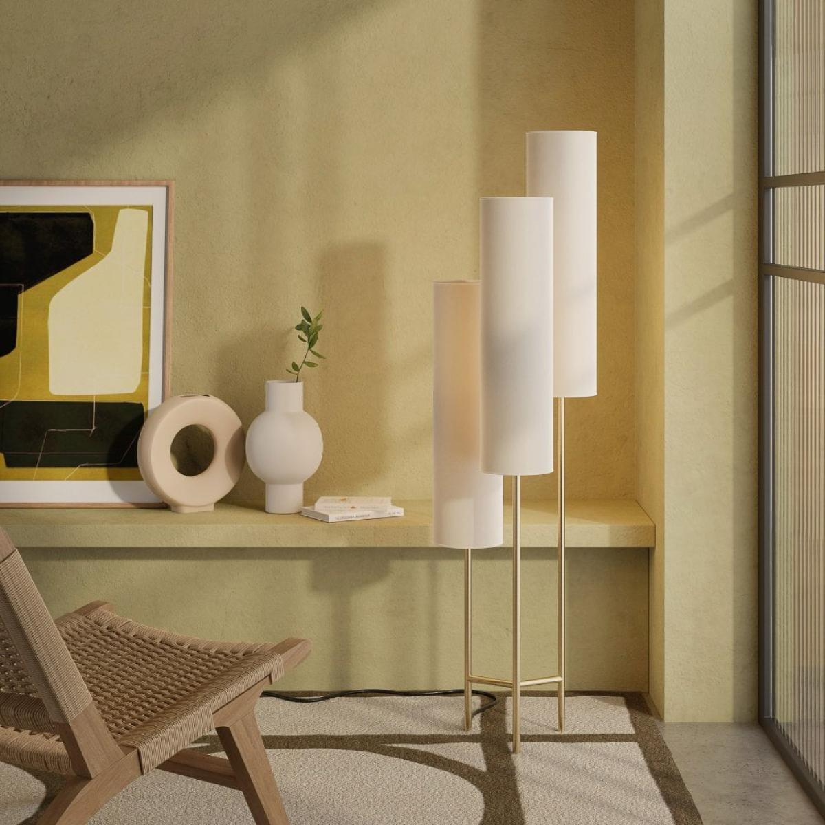 With its three long elegant lampshades and simple metal stems in a brushed brass finish, the Lisburn Floor Lamp is simple yet sculptural, injecting contemporary style into living spaces. The tripod metal stems offer stability for this floor lamp with the neutral hues and classic shapes bringing elegance and sophistication.