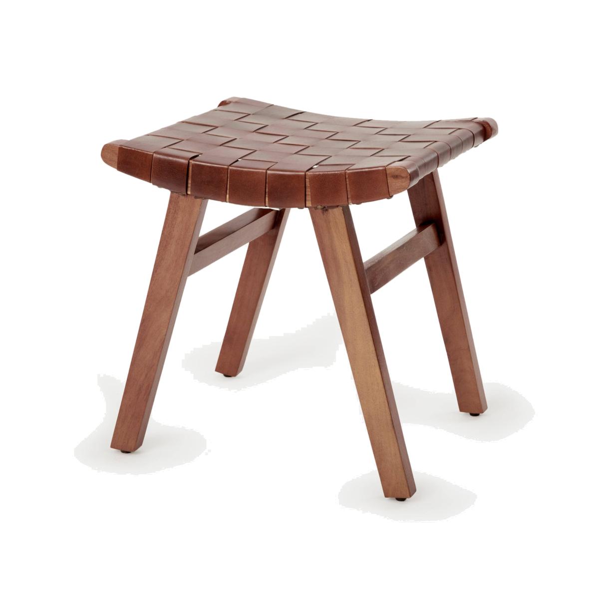 Liscia Woven Leather Stool, Tan