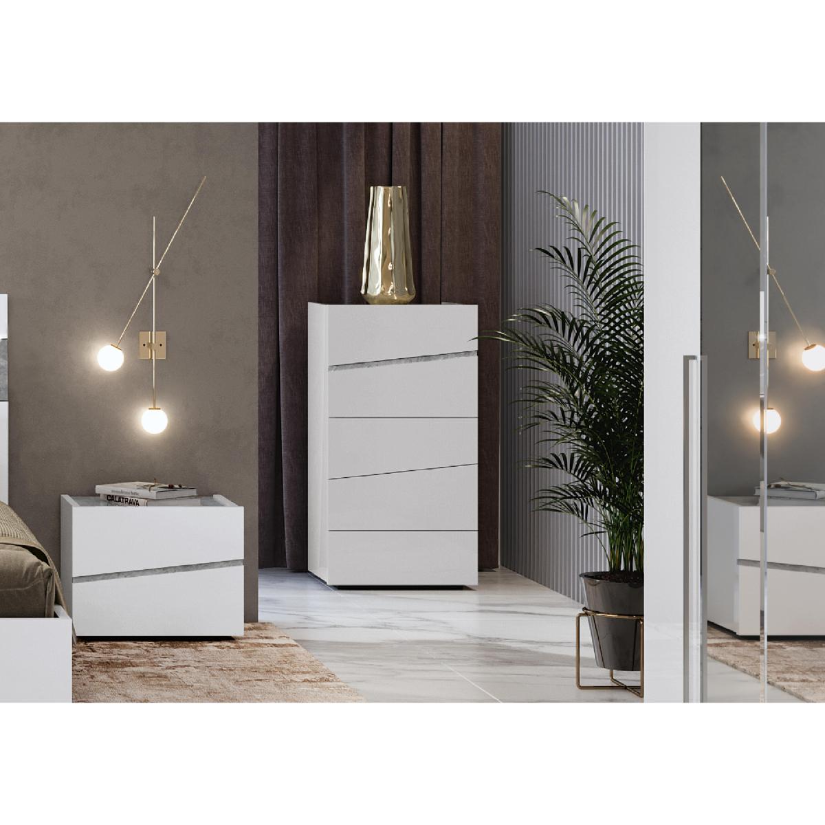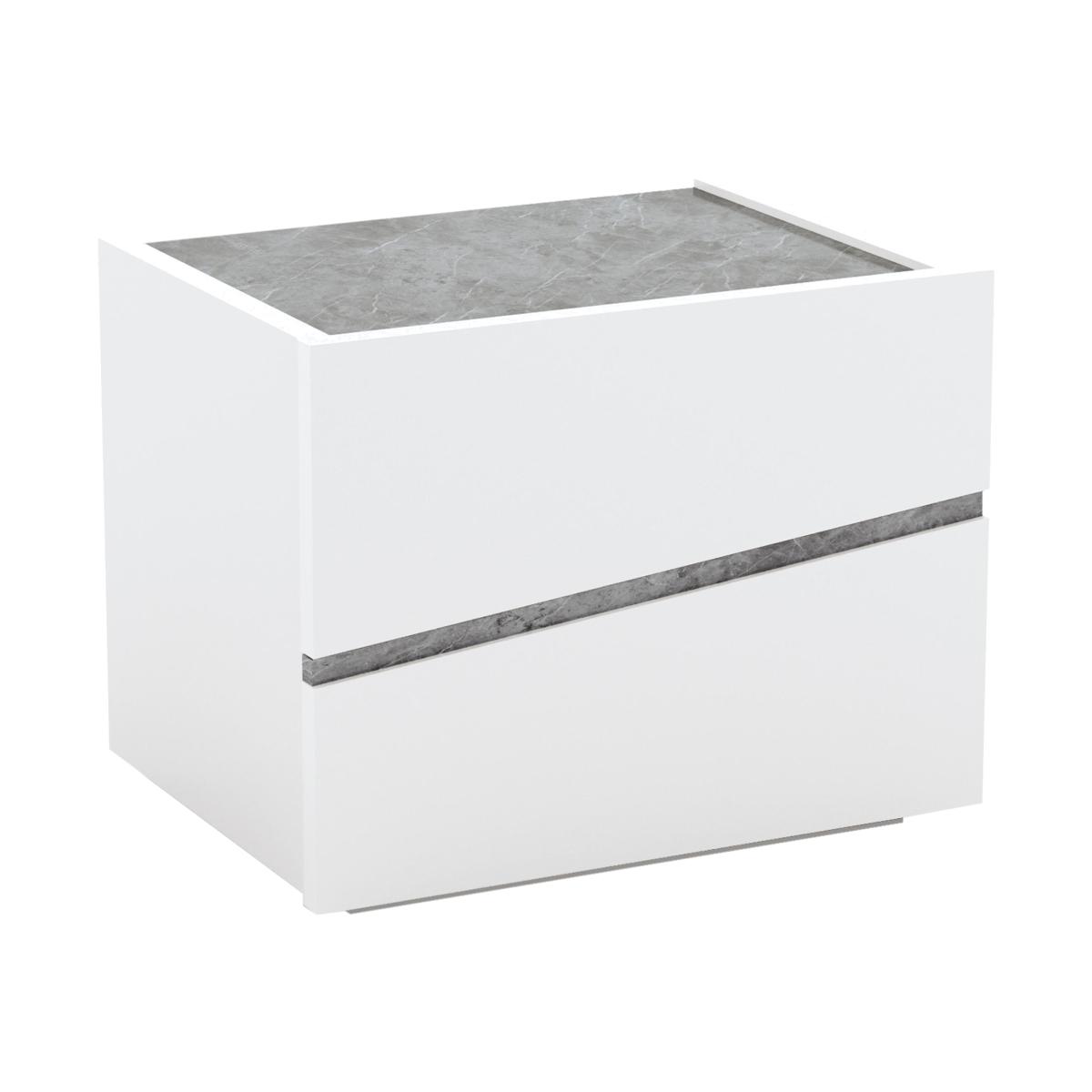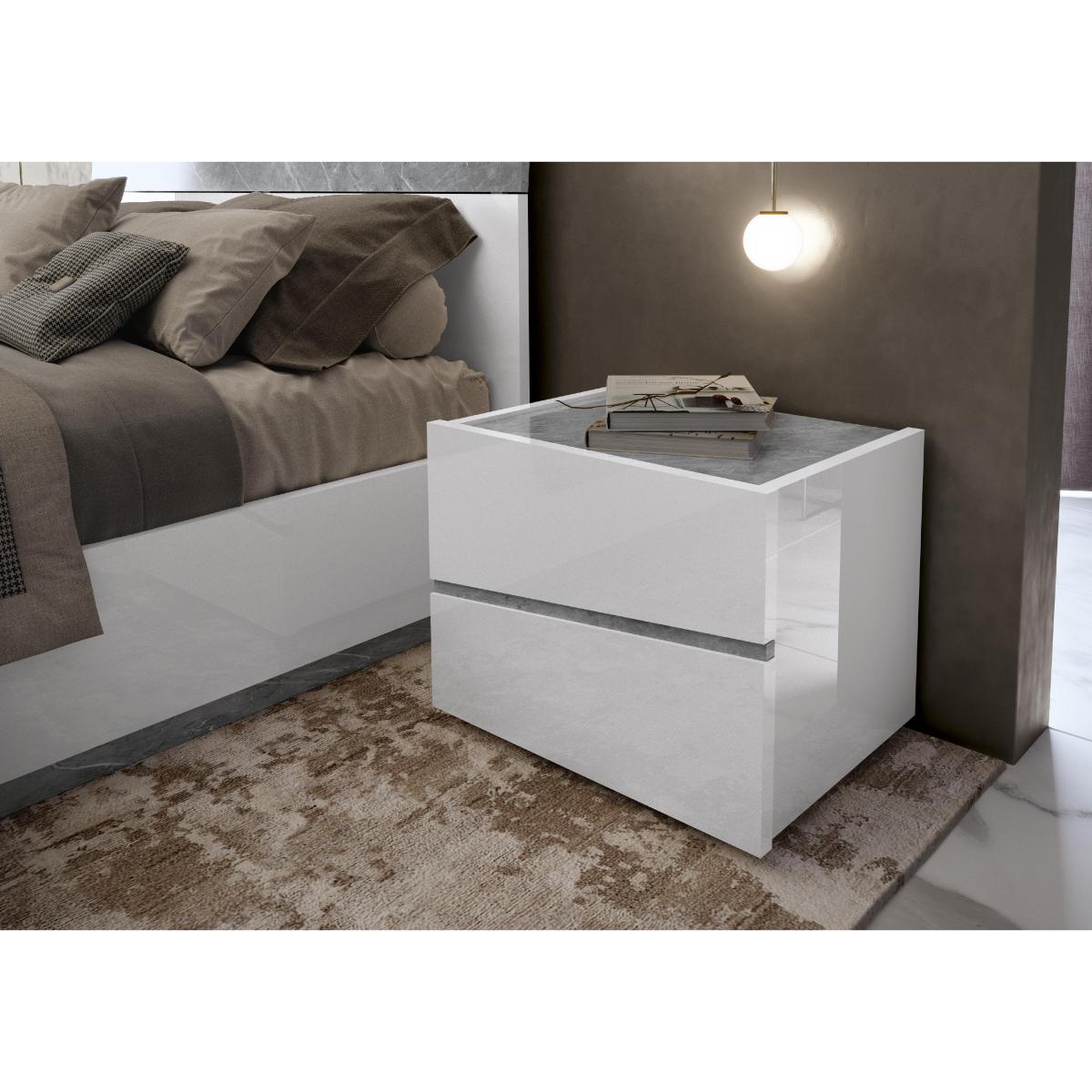 Everything about our Italian Lisia bedroom furniture collection says modern luxury style. The white lacquered finish is quite stunning while the Carrara marble-effect accents – on dresser tops and drawer fronts – add a touch of European elegance. This is a statement collection in more ways than one. Its focal point is an eye-catching bed frame that shines from every angle thanks to its high-gloss and marble-effect headboard with LED lighting. The range itself is very extensive with a wide choice of wardrobe sizes and styles as well as many options for chests of drawers for a fully coordinated look, and every piece is generously proportioned to maximise storage space as well as fabulous Italian style. Everything about this high-gloss bedside cabinet says Italian design – the white lacquered finish, the marble-effect top, the angled drawer fronts. The perfect bedside cabinet for your glam bedroom. Why you'll love it. Bring high-end Italian design to your bedroom with this high-gloss bedside cabinet. Modern luxury style. Stunning white lacquered finish. Bold angled drawer fronts. Carrara marble-effect top and drawer front insert. Made in Italy. This 2-drawer bedside cabinet is part of the Lisia bedroom furniture range. What you need to know. The lacquered finish is 4 layers deep, the result of a unique high-tech process. Please note that the lacquered finish may show surface scratches under certain lighting. While durable, this finish is not heat proof or heat resistant. Use coasters and placemats at all times. Avoid abrasive cleaners. WARNING!. Furniture can tip over unexpectedly and cause injury. This item must be fixed to a wall using the anti-tip kit provided. Be sure to use the correct wall fixings suitable for the walls in your home. Furniture Village is not able to fix anti-tip devices for you. Seek professional advice if you are unsure.