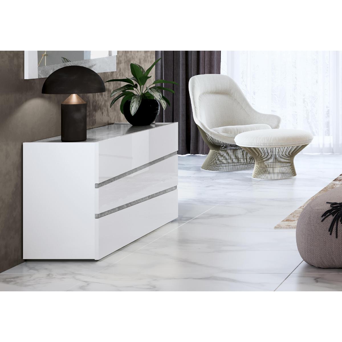 Everything about our Italian Lisia bedroom furniture collection says modern luxury style. The white lacquered finish is quite stunning while the Carrara marble-effect accents – on dresser tops and drawer fronts – add a touch of European elegance. This is a statement collection in more ways than one. Its focal point is an eye-catching bed frame that shines from every angle thanks to its high-gloss and marble-effect headboard with LED lighting. The range itself is very extensive with a wide choice of wardrobe sizes and styles as well as many options for chests of drawers for a fully coordinated look, and every piece is generously proportioned to maximise storage space as well as fabulous Italian style. Bedroom storage is simply more stylish in this fabulous high-gloss 3-drawer dresser. The white lacquered finish is accentuated by the marble-effect accents. Beautifully made in Italy. Why you'll love it. Bring high-end Italian design to your bedroom with this high-gloss 3-drawer dresser. Modern luxury style. Stunning white lacquered finish. Bold angled drawer fronts. Carrara marble-effect top and drawer front inserts. Made in Italy. This 3-drawer dresser is part of the Lisia bedroom furniture range. What you need to know. The lacquered finish is 4 layers deep, the result of a unique high-tech process. Please note that the lacquered finish may show surface scratches under certain lighting. While durable, this finish is not heat proof or heat resistant. Use coasters and placemats at all times. Avoid abrasive cleaners. WARNING!. Furniture can tip over unexpectedly and cause injury. This item must be fixed to a wall using the anti-tip kit provided. Be sure to use the correct wall fixings suitable for the walls in your home. Furniture Village is not able to fix anti-tip devices for you. Seek professional advice if you are unsure.