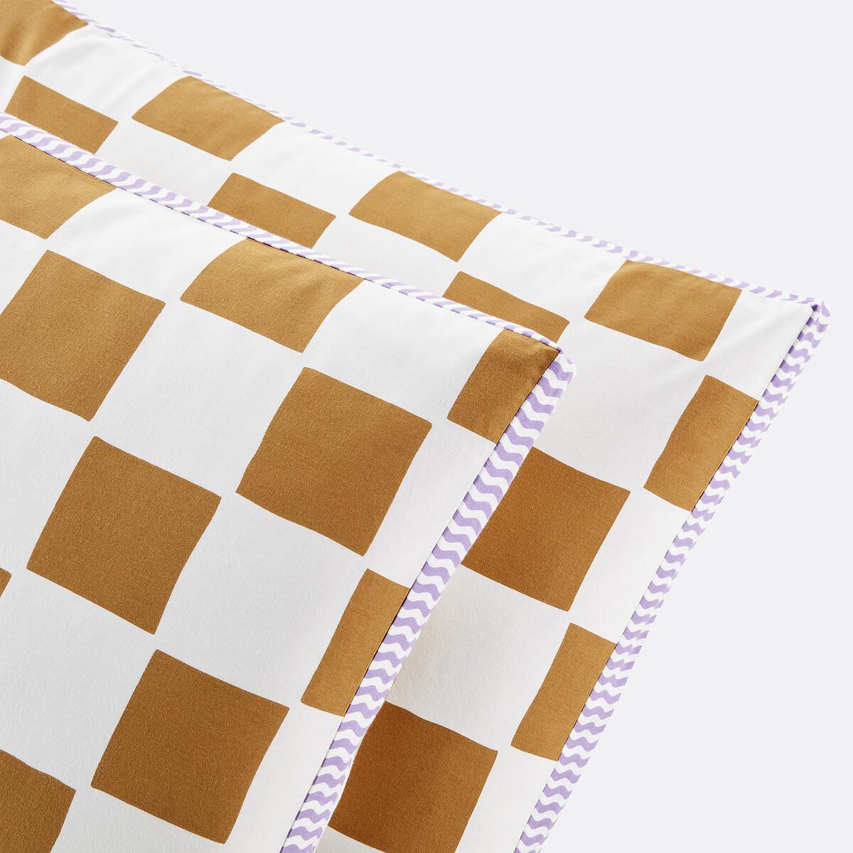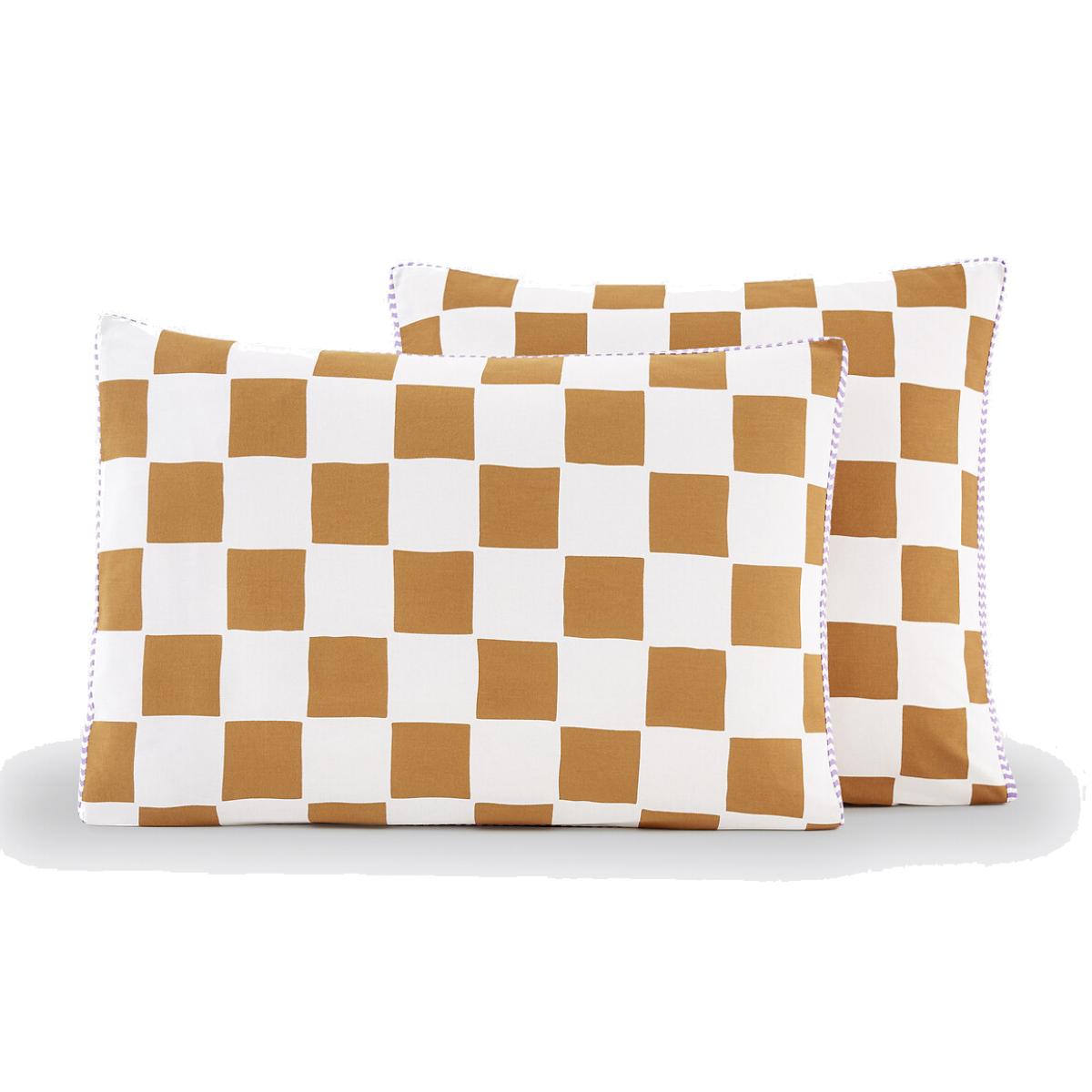 Lismore children's bed linen has a graphic and vibrant spirit; a checkerboard design finished with pretty striped ribbon.. Created by La Redoute Interiors. Cotton is part of our daily lives. We love it for its suppleness and softness. Easy Care, it is ideal for the beds of young and old alike!Product Details • 100% cotton • Contains 30% recycled cotton • 144 thread count • Double-sided checkerboard print • Striped ribbon finish. Match this item with the rest of the bedding in the range for a stylish bedroom. And you can mix and match it with different colours and styles from our other bedding ranges when you want to change things up and create your own unique look.. Care Advice • Machine washable at 60°C • By washing your laundry at 40°C instead of 60°C, you limit energy consumption. Dimensions • 50 x 70cm: Rectangular pillowcase • 63 x 63cm: Square pillowcase • Recycled cotton. Using recycled cotton is all about conserving resources and reducing waste. • OEKO-TEX® Standard 100. Standard 100 certification by OEKO-TEX® tests textile products for harmful substances via an independent, international label.