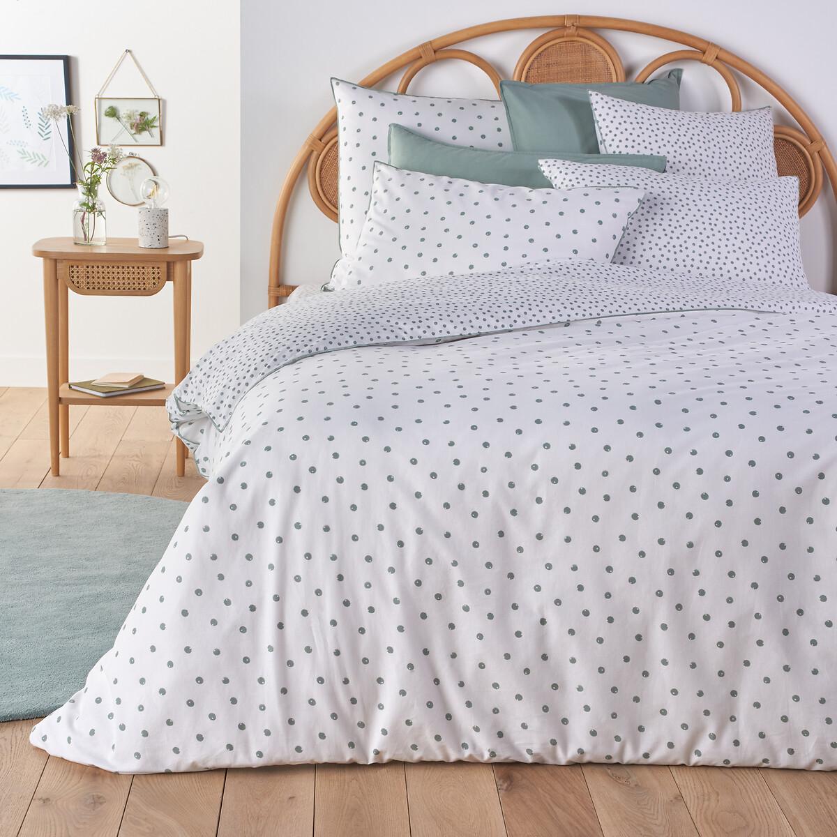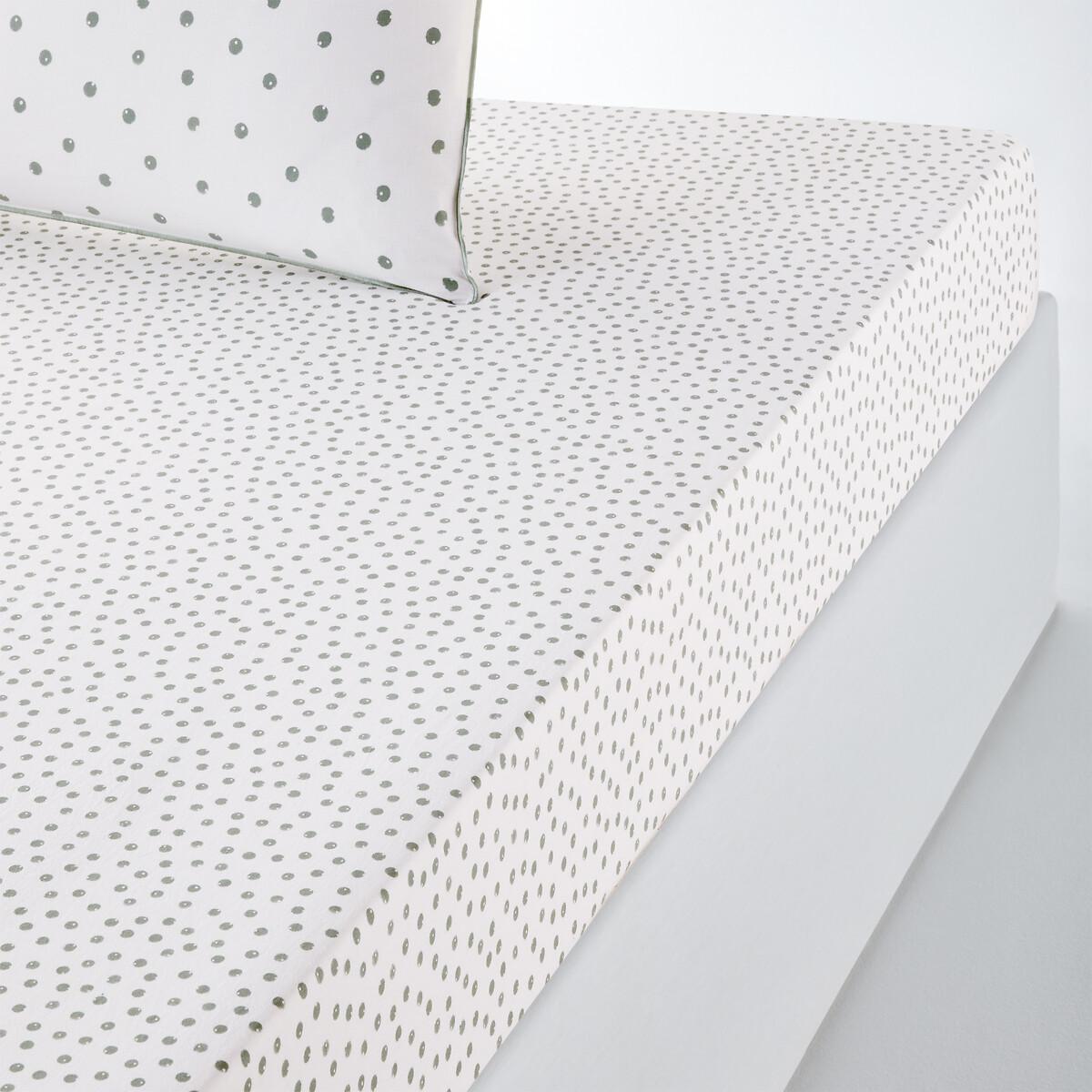 Small green polka dots printed on a soft and comfortable washed cotton... Here is the Lison fitted sheet. A design exclusive to La Redoute Interiors. The washed cotton has been delicately bleached during its manufacture. Soft, supple and comfortable, it softens over time. Its slightly wrinkled appearance is incredibly on-trend, and it does not require ironing. Product Details • 100% cotton • 144 thread count • Sage green polka dot print on a white background • For mattress height 25cm. Care Advice • Machine washable at 60°C • By washing your laundry at 40°C instead of 60°C, you limit energy consumption. Sizes • 90 x 190cm: Single • 140 x 190cm: Double • 160 x 200cm: King • 180 x 200cm: Super King • OEKO-TEX® Standard 100. Standard 100 certification by OEKO-TEX® tests textile products for harmful substances via an independent, international label.