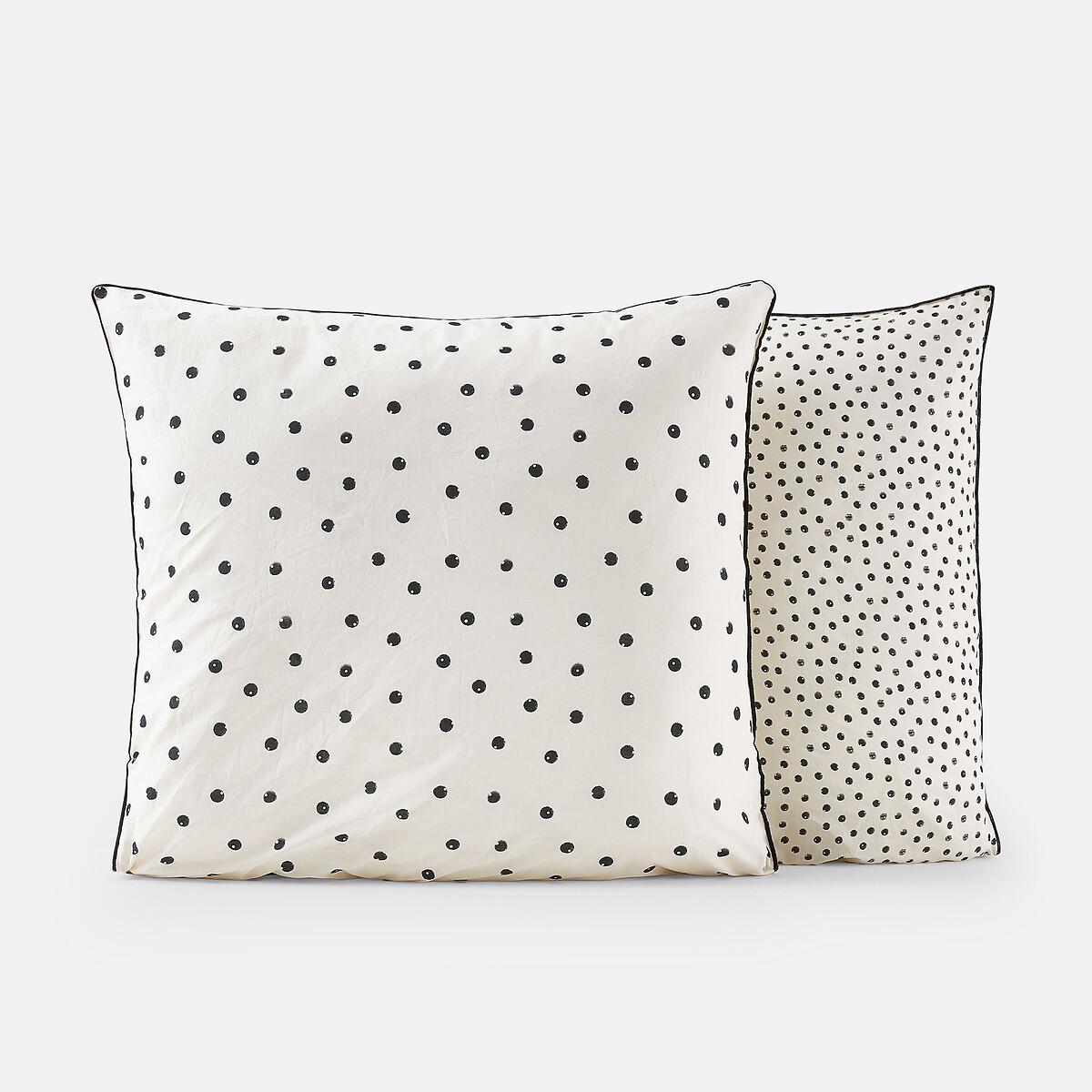 The Lison printed washed cotton pillowcase. A timeless polka dot print in very soft and supple washed cotton. The washed cotton has been delicately bleached during its manufacture. Soft, supple and comfortable, it softens over time. Its slightly wrinkled appearance is incredibly on-trend, and it does not require ironing. Product Details • 100% cotton • 144 thread count • Different spots on either side • Contrasting bourdon trim. Care Advice • Machine washable at 60°C • By washing your laundry at 40°C instead of 60°C, you limit energy consumption. Sizes • 63 x 63cm: Square • 50 x 70cm: Rectangular • OEKO-TEX® Standard 100. Standard 100 certification by OEKO-TEX® tests textile products for harmful substances via an independent, international label.