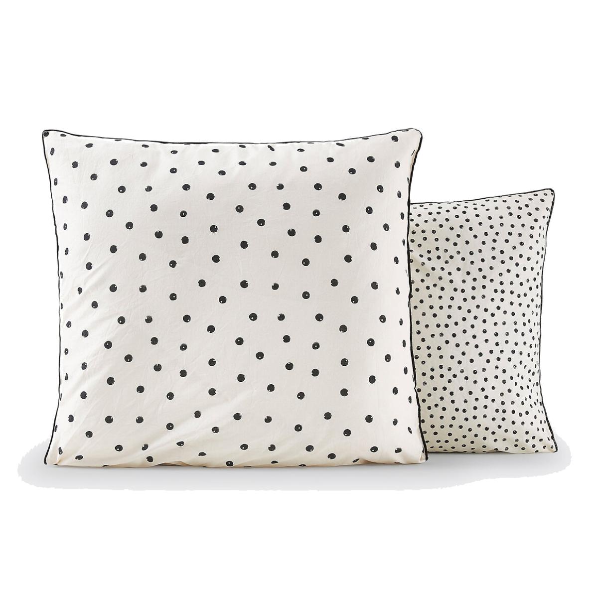 The Lison printed washed cotton pillowcase. A timeless polka dot print in very soft and supple washed cotton. The washed cotton has been delicately bleached during its manufacture. Soft, supple and comfortable, it softens over time. Its slightly wrinkled appearance is incredibly on-trend, and it does not require ironing. Product Details • 100% cotton • 144 thread count • Different spots on either side • Contrasting bourdon trim. Care Advice • Machine washable at 60°C • By washing your laundry at 40°C instead of 60°C, you limit energy consumption. Sizes • 63 x 63cm: Square • 50 x 70cm: Rectangular • OEKO-TEX® Standard 100. Standard 100 certification by OEKO-TEX® tests textile products for harmful substances via an independent, international label.