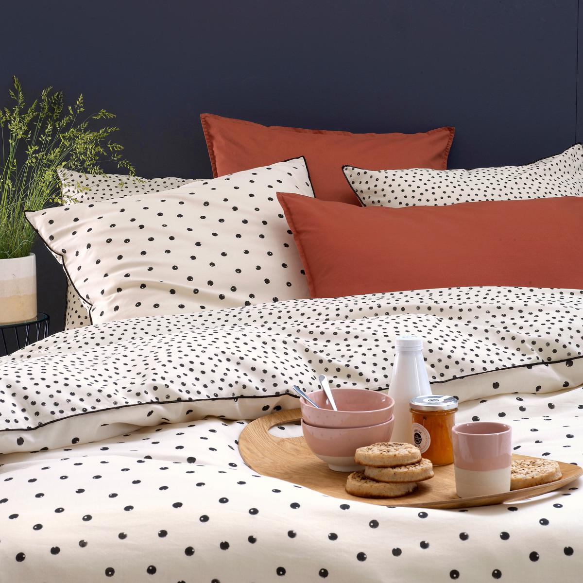 We love the timeless spotty print of this Lison duvet cover, made from pure washed cotton for a super-soft finish. More Details:. 100% washed cotton, 57 threads/cm2. Different spots on each side. Button hem. Contrasting border. Washable at 60°.The Oeko-Tex® label guarantees that the items tested and certified do not contain any harmful substances that could be detrimental to health. Available Sizes:. 140 x 200cm : Single. 200 x 200 cm : Double. 240 x 220 cm : King. 260 x 240 cm : Superking. The Best Quality label gives you the best of La Redoute, using high-quality materials and excellent finishes for a quality product.
