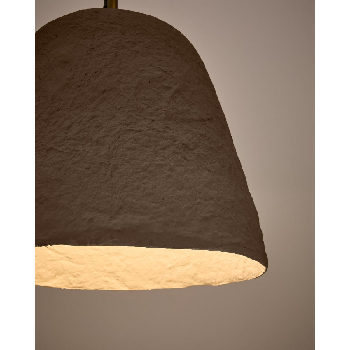 The Lisora ceiling lamp is a unique piece that stands out for its originality. Made of papier-mâché from recycled newspaper, each piece is exclusive, with slight variations in tone and texture that give it its own character. Its design features a lamp shade with soft, slightly conical lines, which projects light in a warm, enveloping way, creating a cosy atmosphere. The Lisora lamp is compatible with an E27 bulb up to 40W (sold separately). Its versatile and organic style also means that it integrates perfectly with other elements in the collection, allowing you to create harmonious decorative spaces with personality.