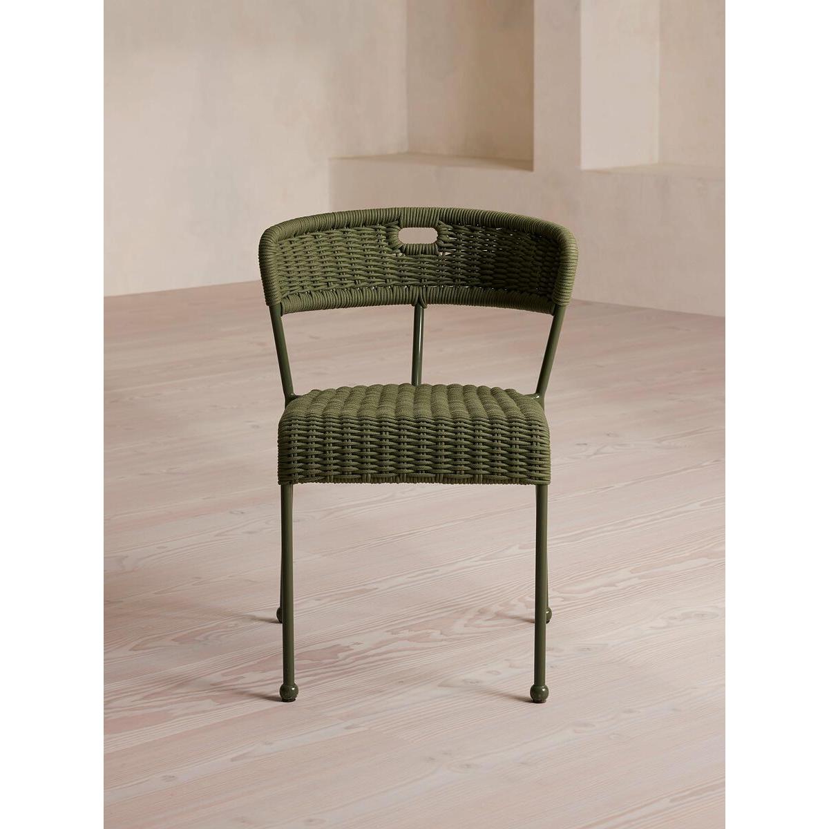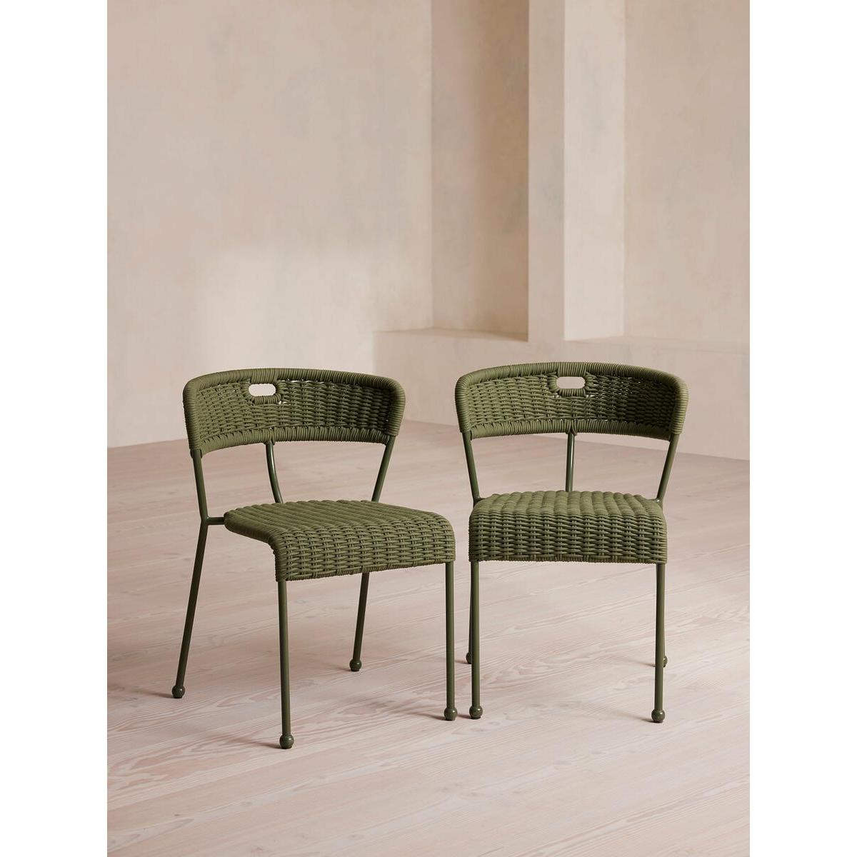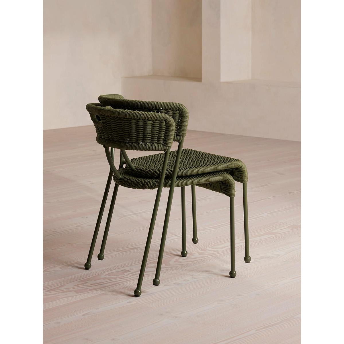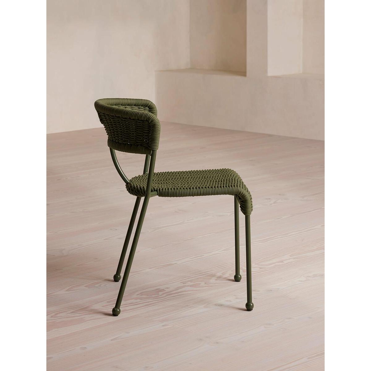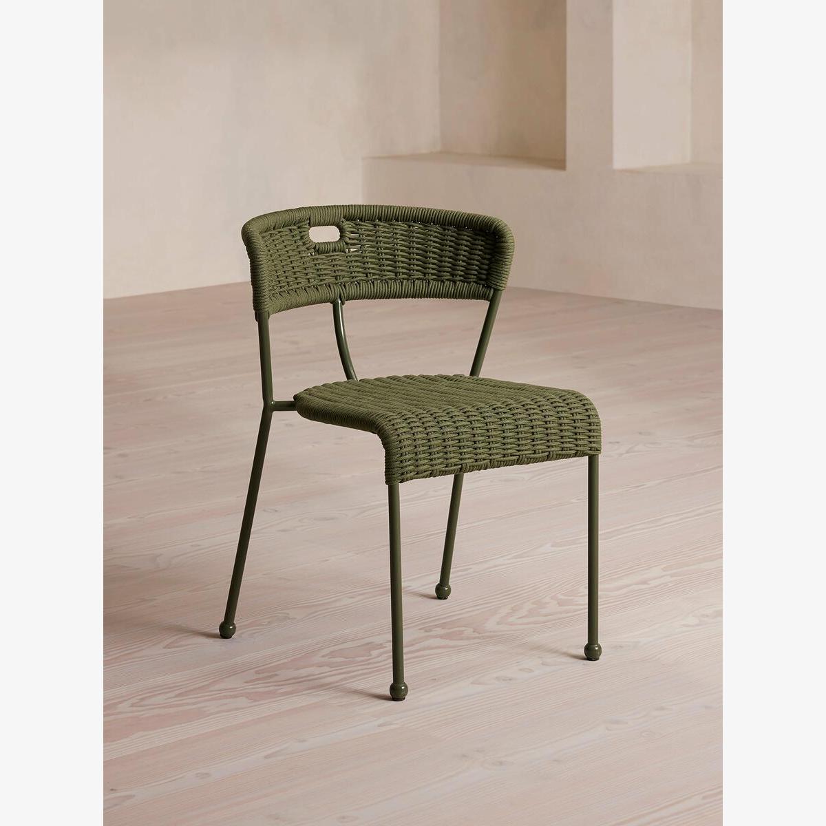 Our Lisson dining chairs echo the coastal material finishes of Brighton Beach House, using a bespoke hand-dyed woven rope suspension. The stackable design makes them easy to transport. Also available in a natural shade, use them to bring an artisanal feel to your outdoor dining set-up. Outdoor dining chairs Come as a pair Also available in Natural Bespoke hand-dyed woven rope suspension Stackable design with handles Inspired by Brighton Beach House