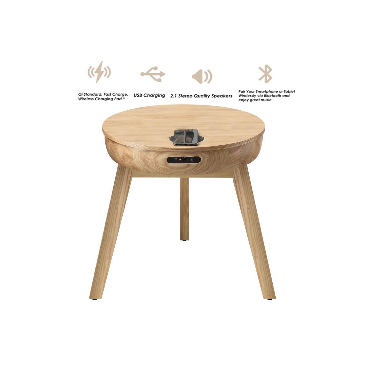 The combination of sleek design and smart technology makes the Lista range of desks and occasional tables perfect for the forward-thinking and design-aware contemporary home. In your choice of oak or walnut veneer, pieces present smooth rounded edges, clean lines and splayed legs, for a gently retro feel that’s so very twenty-first century. Look closely and you’ll find all kinds of concealed extras like Bluetooth speakers, wireless charging, USB ports and more. Compact in size and ergonomically efficient, the Lista collection is designed for your modern lifestyle. With its gently retro style – smoothly rounded and with splayed legs – the Lista side table will find a home in any contemporary living space. Available in two looks – an oak veneer top and splayed solid ash legs with a clear lacquer finish, and walnut veneer top and rubberwood splayed legs painted matt black – this charming end table brings plenty of style in a usefully compact format. Great as a side table or lamp table, this circular table also makes a great nightstand in a smaller bedroom. The Lista side table is part of the innovative Lista range of occasional tables. The collection includes pieces with smart technology, including wireless charging, Bluetooth speakers and USB ports, built right in. Did you know?. Natural wood has unique markings, with some colour variation and every piece is different. The colour and tone of wood improves with age.