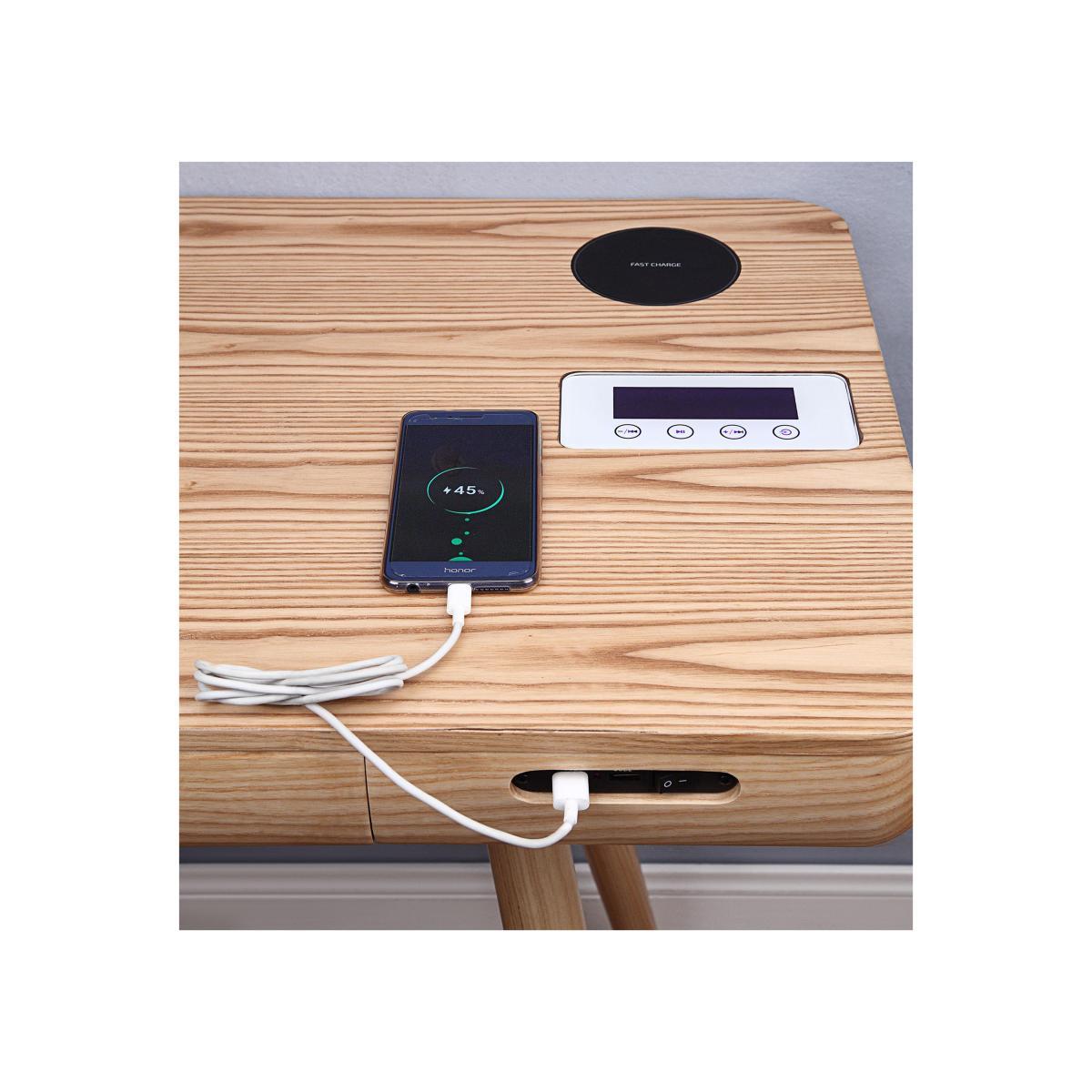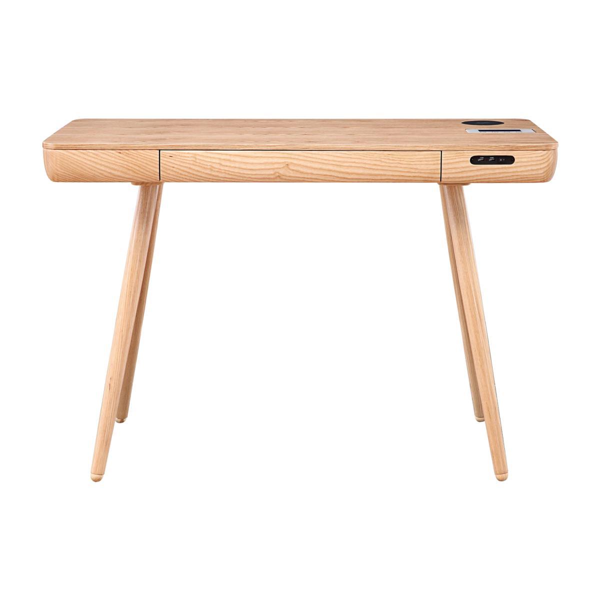 The combination of sleek design and smart technology makes the Lista range of desks and occasional tables perfect for the forward-thinking and design-aware contemporary home. In your choice of oak or walnut veneer, pieces present smooth rounded edges, clean lines and splayed legs, for a gently retro feel that’s so very twenty-first century. Look closely and you’ll find all kinds of concealed extras like Bluetooth speakers, wireless charging, USB ports and more. Compact in size and ergonomically efficient, the Lista collection is designed for your modern lifestyle. Compact and stylish, the Scandi-style Lista smart desk conceals some very innovative features. There’s a Samsung and Apple-compatible wireless charging pad, Bluetooth speakers and two USB ports, making it so easy to charge and use your devices while you’re working (or relaxing). Simply plug this desk into the wall, and you’re ready for business. You’ll also appreciate its sleek minimal good looks. Compactly proportioned it has smoothly rounded corners and retro-style splayed legs. Choose either oak veneer table top and solid ash legs with a clear lacquer finish, or walnut veneer top and solid rubberwood legs with a matt black painted finish. The Lista smart desk is part of the Lista collection of cool desks and occasional tables, with and without connected capabilities. WARNING!. Furniture can tip over unexpectedly and cause injury. This item shall be fixed to a wall using the anti-tip kit provided with the furniture. Be sure to use the correct wall fixings suitable for the walls in your home. Did you know?. Natural wood has unique markings, with some colour variation and every piece is different. The colour and tone of wood improves with age.