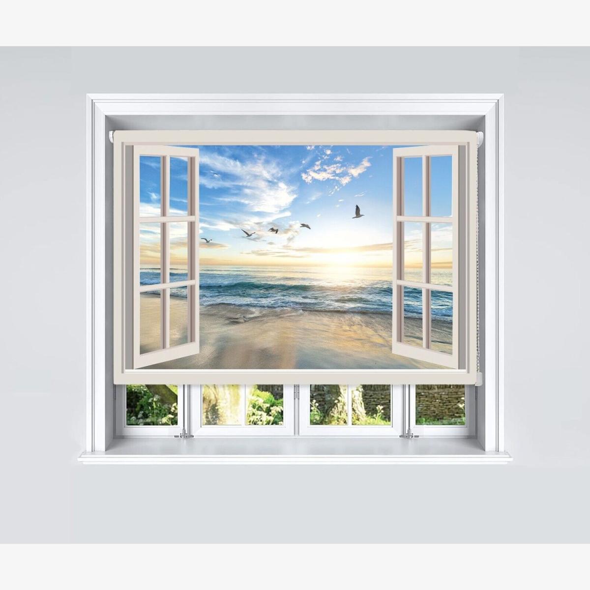Window Beach View Design Blackout Roller Blinds Ideal for any room in your house this blackout roller blind has been well crafted with 100 polyester to ensure no light can be passed through making this ideal for blocking out any unwanted light. Printed with beautiful Window Beach View , this blind provides a classic touch to your home. This blind feature a child safe mechanism and is available in a range of widths and colours and is supplied with fittings included. Child safety Install and use cord safety devices according to manufacturers instructions. Read our Blind Safety Guide for more information. These blinds can be cut down to suit your requirements. Please note that blinds cannot be returned once altered. Please note The width measurements quoted is the total width of blind, which includes the brackets and mechanism. Window Beach View Design Blackout Roller Blinds Ideal for any room in your house this blackout roller blind has been well crafted with 100 polyester to ensure no light can be passed through making this ideal for blocking out any unwanted light. Printed with beautiful Window Beach View , this blind provides a classic touch to your home. This blind feature a child safe mechanism and is available in a range of widths and colours and is supplied with fittings included. Child safety Install and use cord safety devices according to manufacturers instructions. Read our Blind Safety Guide for more information. These blinds can be cut down to suit your requirements. Please note that blinds cannot be returned once altered. Please note The width measurements quoted is the total width of blind, which includes the brackets and mechanism. Pack Included1 x Blind with Fixtures InstructionsMaterial10. 0 Polyester Care Instructions Wipe clean with a soft cloth