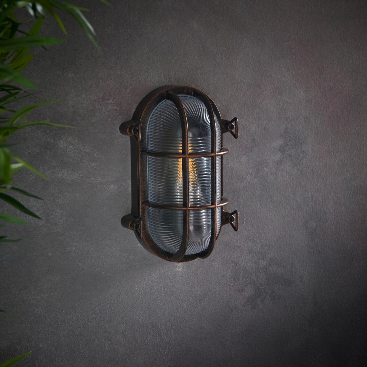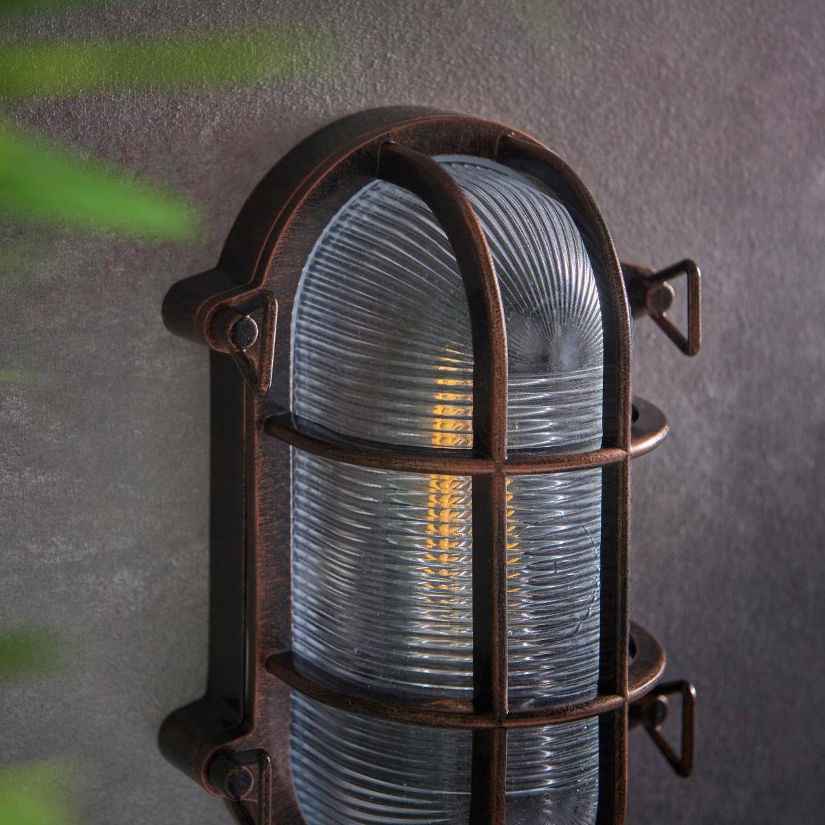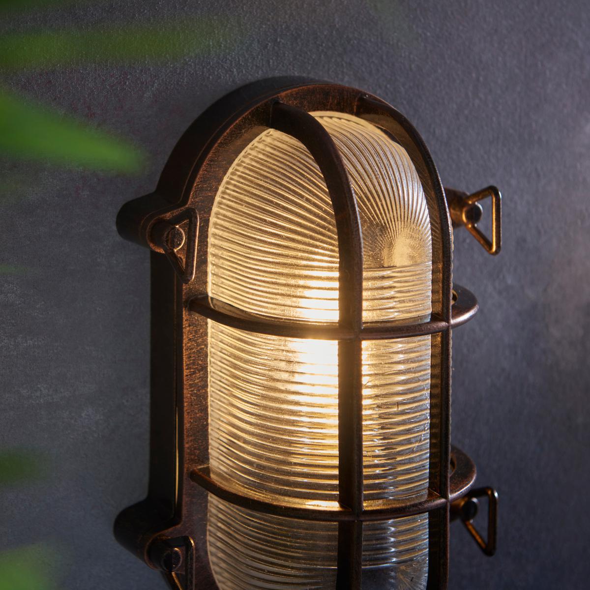 Add a contemporary industrial style touch to your indoor or outdoor space with the Listera Outdoor Wall Light. Crafted from an aluminium alloy with an antique brushed bronze finish, complete with a ribbed glass light shade. This rustic effect wall light is also available in a choice of matte black and brushed silver finishes for a stylish weathered look. With IP44 rating the Listera Wall Light is suitable for both indoor and outdoor use.