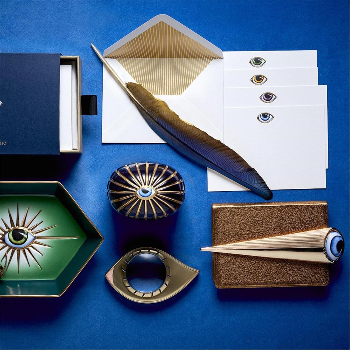 Add a dash of whimsy to your workspace with this Lito Eye letter opener from L’Objet. Crafted from Limoges porcelain and brass, this letter opener features an eye design and 24 carat gold plating. Made in collaboration with LITO, this letter opener is inspired by the eye being a surreal talisman of good luck. A surreal addition to any home, there are also further accessories available separately from L’Objet.