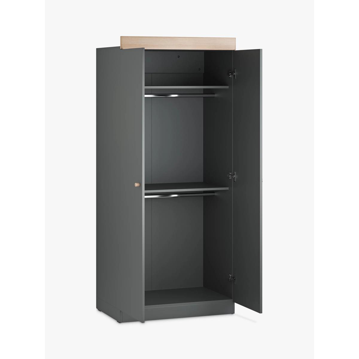 The Burlington range from Little Acorns features stylish and modern Scandinavian-inspired designs. The sleek two-door wardrobe has attractive oak accents and plenty of practical touches such as double shelves and double hanging rails. This piece also grows with your child as the middle shelf and hanging rail are removable, since you may need longer hanging space for bigger clothes as your little one grows. To complete your nursery set, the matching Burlington Cotbed and Dresser are also available for purchase separately. Good to know: The wardrobe comes flat packed in three boxes Estimated assembly time is 2.3 hours Two people recommended for assembly.
