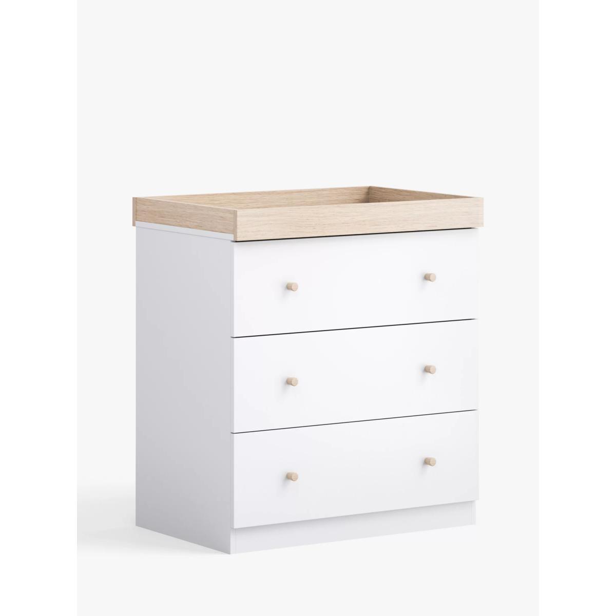 The Burlington range from Little Acorns features stylish and modern Scandinavian-inspired designs with attractive oak accents. Designed to be incredibly useful from day one, this beautifully crafted dresser and changing unit comes with three large, spacious drawers and a baby changing surround, which you can remove as they grow to transform this unit into a chest of drawers. Leaving no visible screw or bolt holes when converted as well as being scratch-resistant, this is a truly versatile piece of nursery furniture that offers years of use. To complete your nursery set, the matching Burlington Cotbed and Wardrobe are also available for purchase separately. Good to know: The dresser comes flat packed in two boxes Estimated assembly time is 2.3 hours Two people recommended for assembly but it is possible with one.