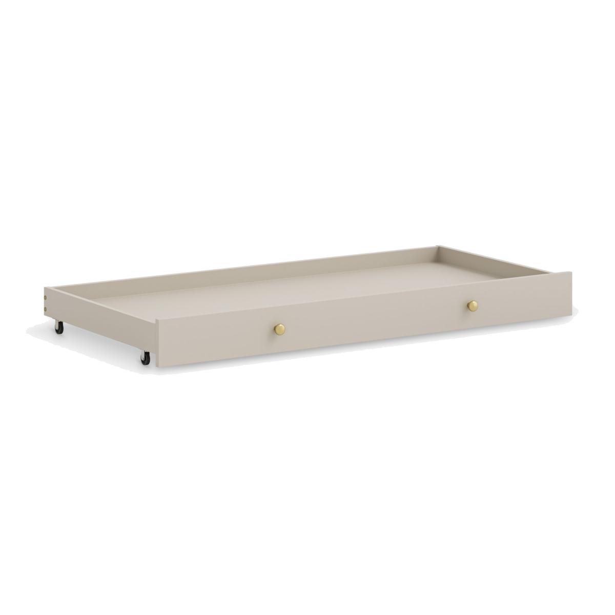 The Little Acorns Celeste cot bed drawer is an ideal storage solution when space is limited. Running on fixed caster wheels it's super smooth to use. Perfect for clothes, toys or changing accessories, the storage drawer sits beautifully under the bed (in cot or toddler bed mode) and thanks to the stylish design, it is sure to look stunning in any nursery, whatever the decor. Please note: This is the under drawer only, the cot bed is sold separately.