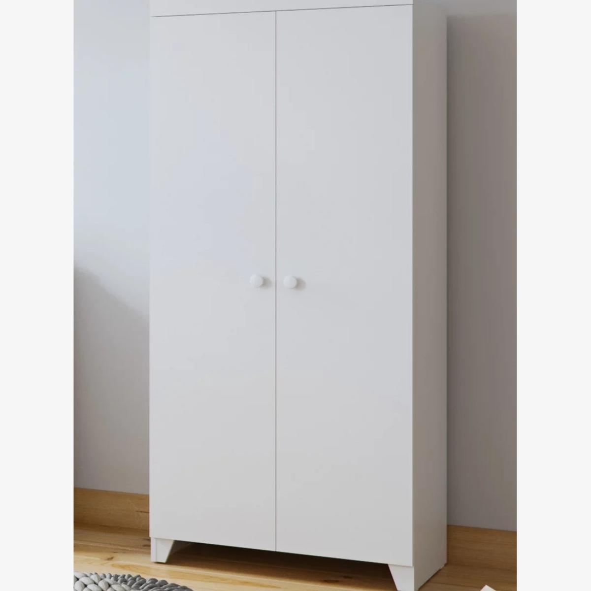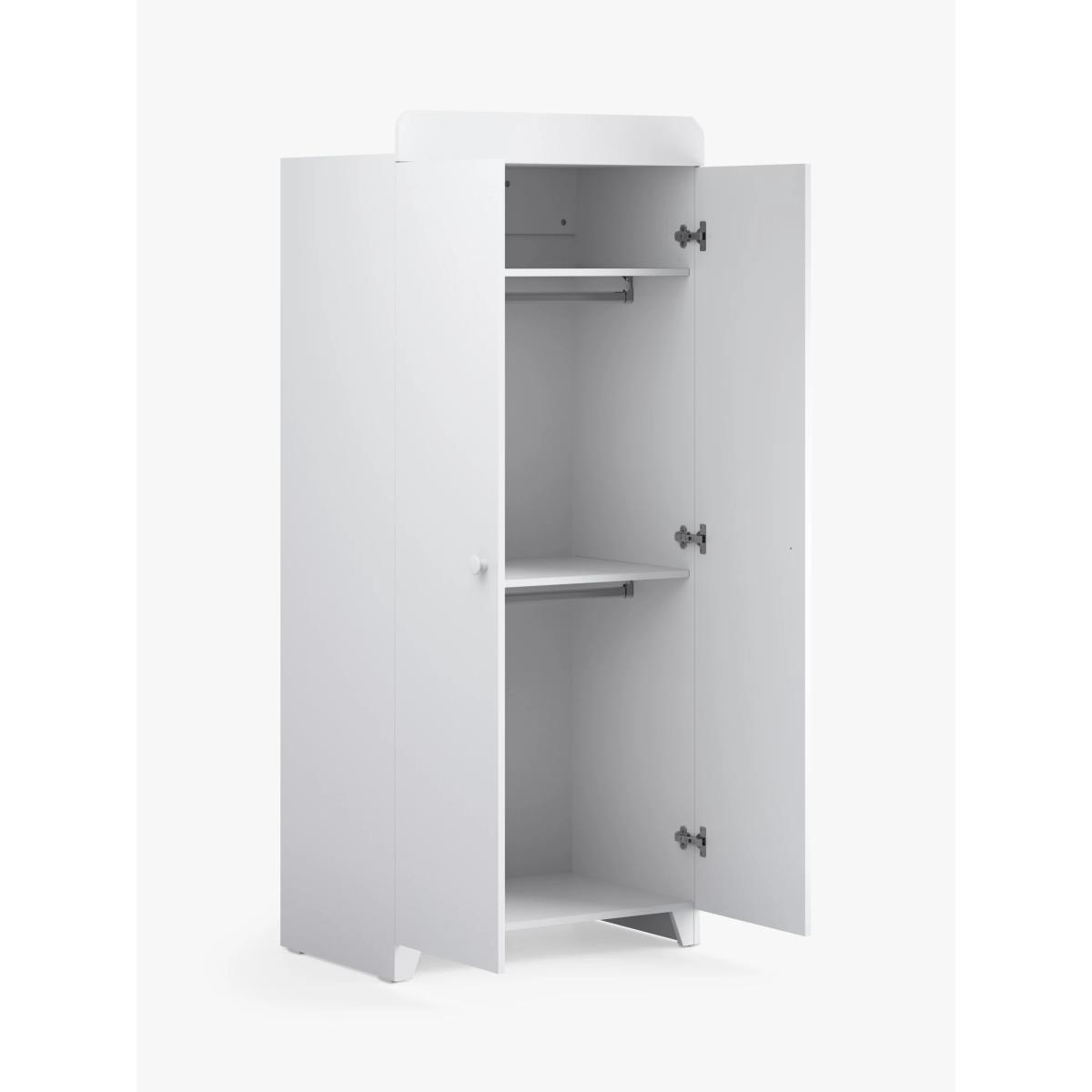With a crisp painted finish, this Little Acorns double width wardrobe will look right at home in your baby's nursery. The sleek and simple design ensures that it will look great with any decor, and the spacious interiors make it a practical choice too. Inside you'll find 2 x hanging rails, 1 removable for larger/longer clothes as the child grows and 2 open shelves (again 1 removable) which are ideal for storing and organising your little one's clothes, shoes and accessories. This wardrobe can continue to be used for many years. Good to know: The wardrobe comes flat packed in three boxes Two people recommended for assembly.