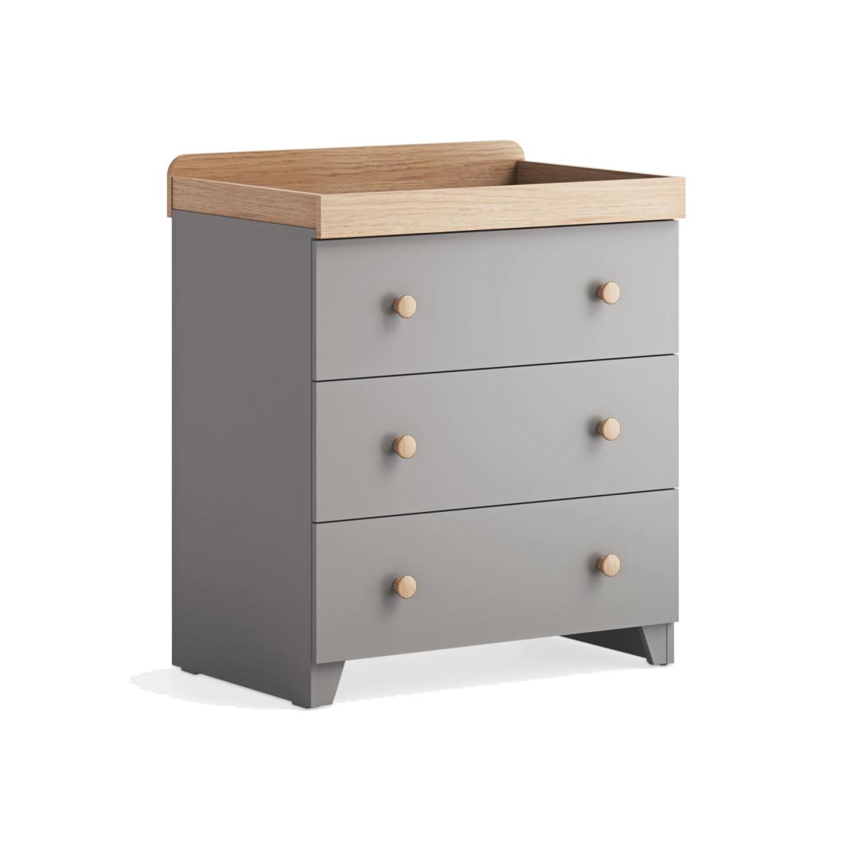 I love the Little Acorns changing table for its versatile two-tone design and practical layout. The soft grey paired with the natural oak top makes it adaptable for various nursery styles, from Scandi minimalism to more playful and colourful schemes. Stylistically, it works well in calm, neutral interiors or modern monochrome settings, adding a touch of warmth. Practical tips include pairing it with cosy textiles and simple, tactile accessories to create a soothing environment. Its compact footprint makes it ideal for smaller spaces, and the neutral tones ensure it will stay relevant as your little one grows.