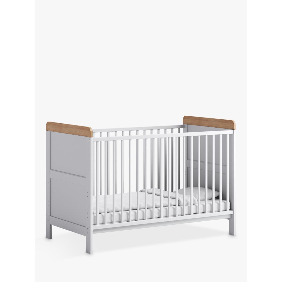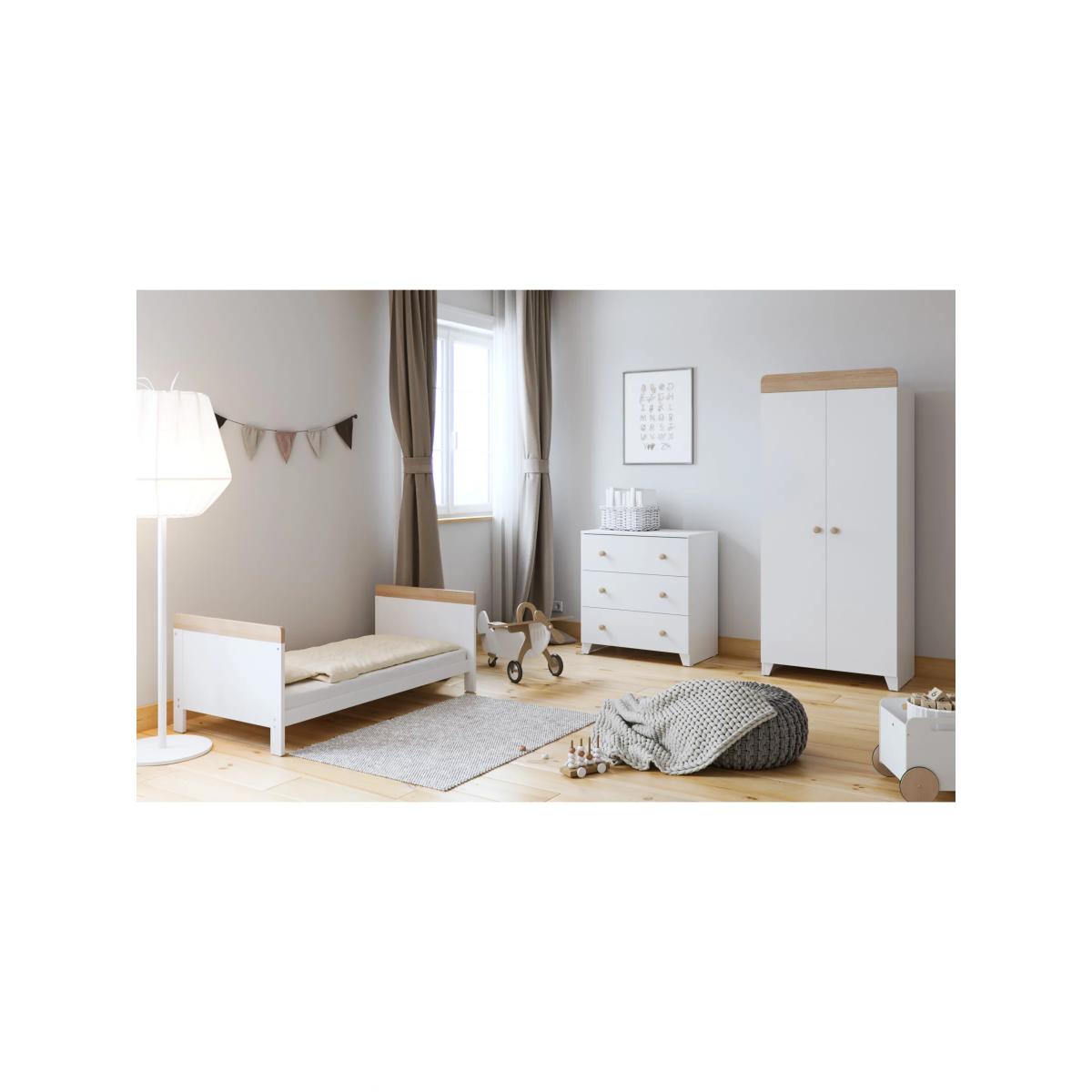 The Classic two-tone Cot Bed from Little Acorns has a sleek look and feel that fits well into most nursery spaces. Designed to be used from birth it has 3 mattress heights so you adjust the base as your child gets older. When they're old enough to climb out simply remove the side rails and split the end panels to create a toddle bed that will last you even longer. Pair with the matching wardrobe and dresser (sold separately) for a complete look.