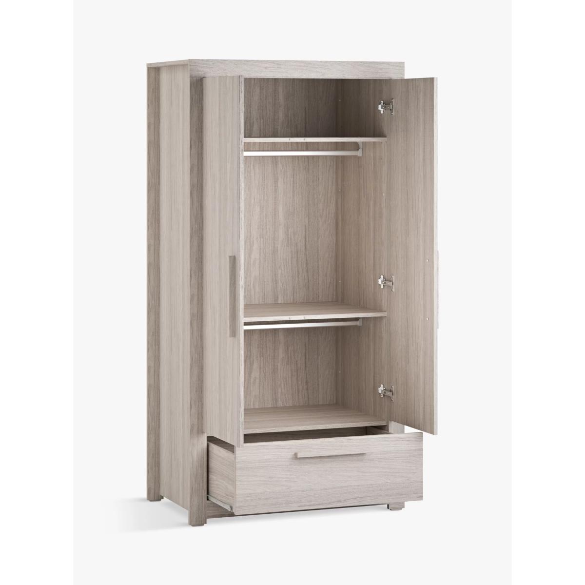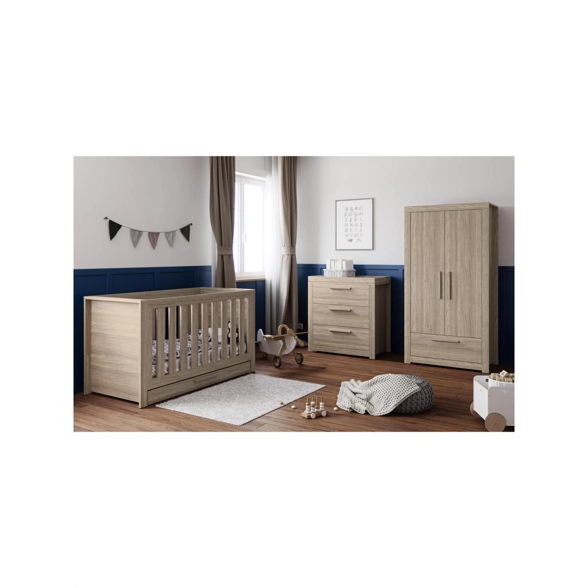 The contemporary design of the Ellesmere range from Little Acorns is sure to be a future classic with its extremely robust and solid design guaranteed to last. The double wardrobe is a great size, offering lots of useful storage for all your baby’s needs. It boasts 2 shelves with hanging rails underneath them and a spacious drawer which has the brand's signature metal support on the bottom. The lower shelf and hanging rail are removable, allowing for longer and larger clothes to fit offering many years of use that lasts as your child grows. Complete the look with the matching cot bed and dresser each sold separately.