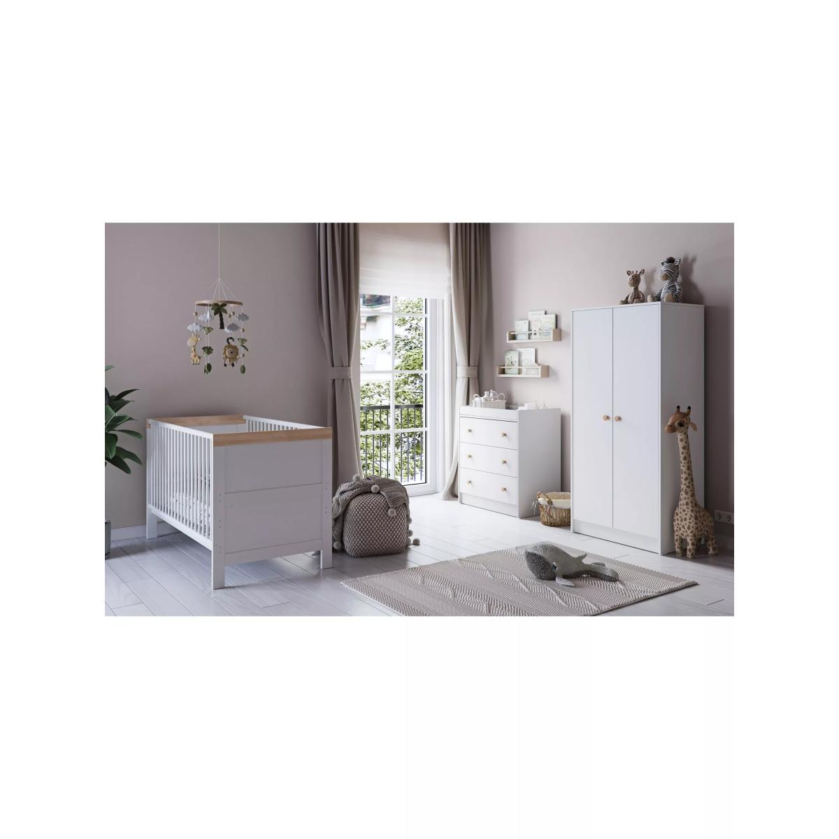 The Little Acorns Florence changer is a versatile piece that works well in both modern and scalloped nursery interiors. Its clean white finish combined with natural oak accents creates a fresh, timeless look, making it easy to coordinate with a variety of colour schemes and styles. I love it for its practical design-ample storage with the drawers allows for easy organisation of baby essentials, while its compact size makes it perfect for smaller spaces. To style it, consider adding soft pastel or neutral accessories on top, like a changing pad or decorative baskets, to keep the look warm and welcoming. It’s a functional yet stylish addition that really grows with your nursery, seamlessly blending practicality with aesthetic appeal.