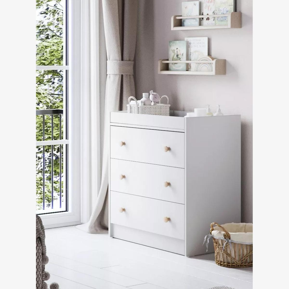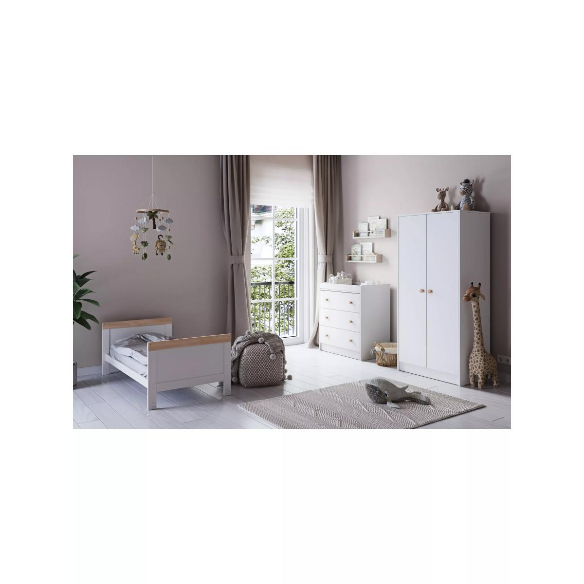 The Florence range from Little Acorns has a modern yet traditional stylish look. Combining great design with practicality the dresser has a great changing area to fit a changing mat and get your little one ready for the day. Below the changing area are 3 deep and spacious drawers, offering lots of useful storage. Each draw has a reinforced metal bar under their bases, enabling longevity of use. Complete the look with the matching cot bed and double Wardrobe, both sold separately.