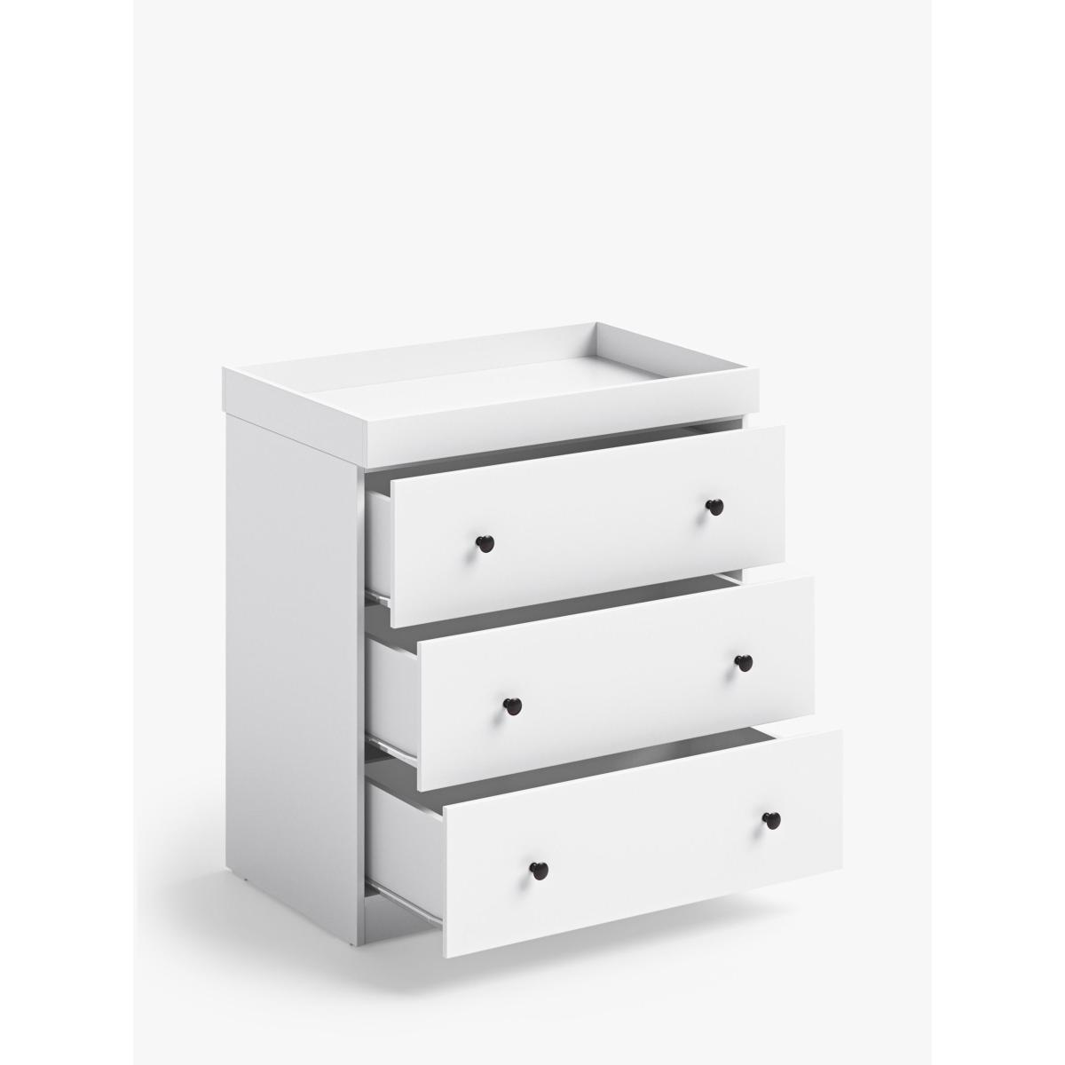 The Little Acorns Harlington Dresser makes a great addition to your child's bedroom. Designed to be incredibly useful from day one, this beautifully crafted dresser and changing unit comes with 3 large, spacious drawers and a baby changing surround, which you can remove as they grow to transform this unit into a stylish, grown-up chest of drawers. Leaving no visible screw or bolt holes when converted as well as being scratch-resistant, this is a truly versatile piece of nursery furniture that offers years of use. Plus each shelf is 40cm deep giving you ample space of storage. To complete your nursery set, the matching Harlington Cotbed and Wardrobe are also available for purchase separately. Good to know: The dresser comes flat packed in two boxes Estimated assembly time is 2.3 hours Two people recommended for assembly but it is possible with one.