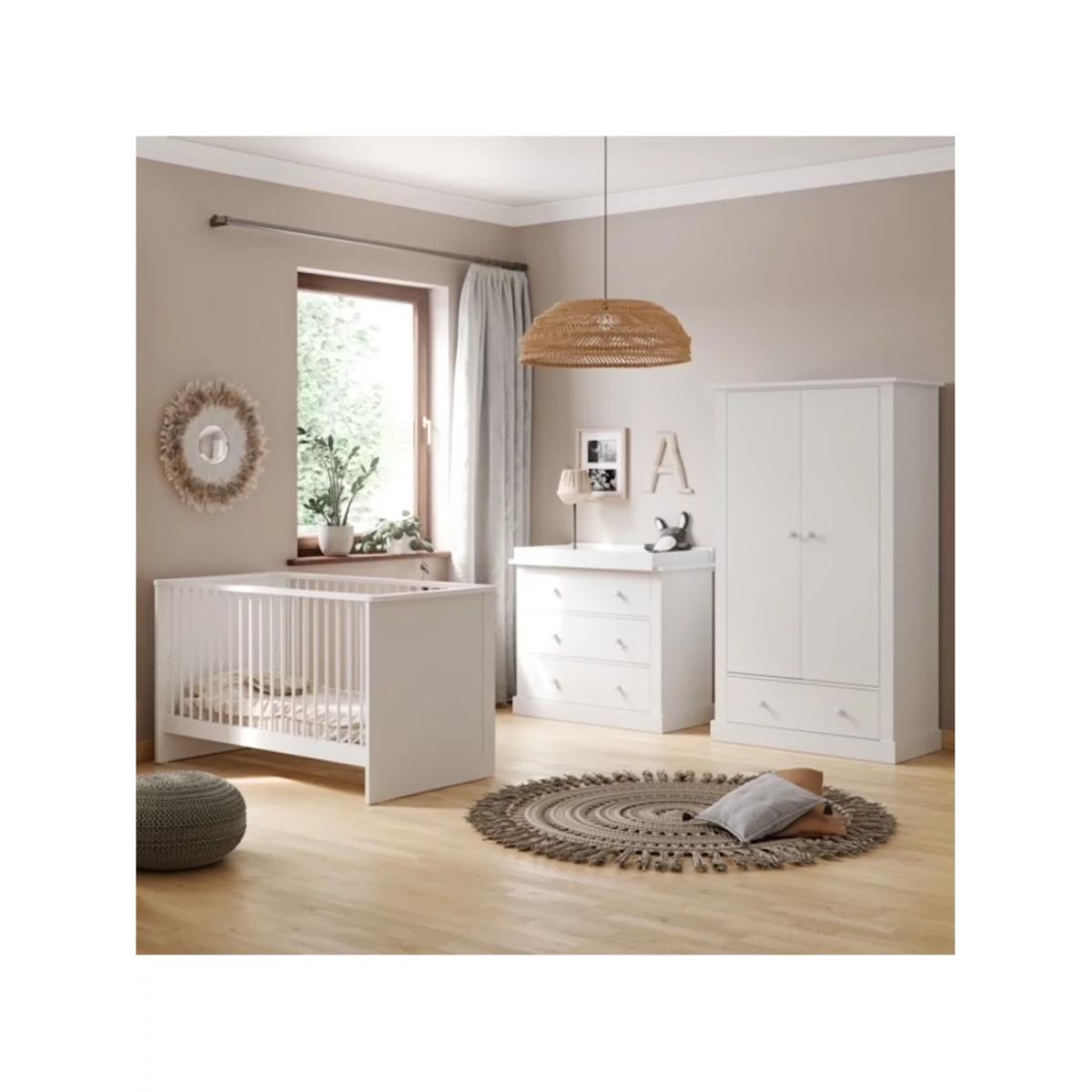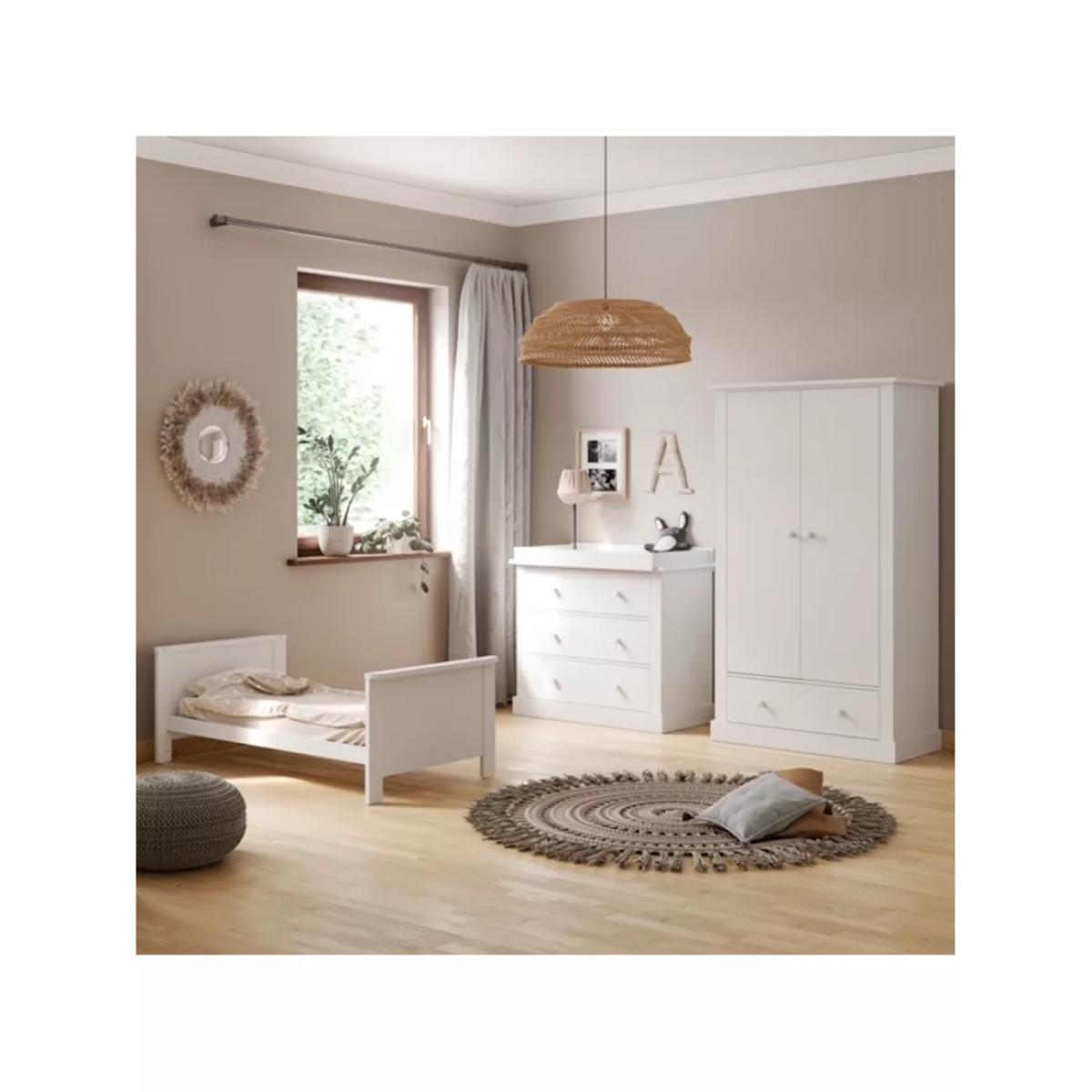 With a sleek design, this double wardrobe offers plenty of options to store all of your little one's essentials. The wardrobe has double shelves with hanging rails, and 1 deep drawer for plenty of storage space. The matching cot bed and dresser can be bought separately for a complete look.