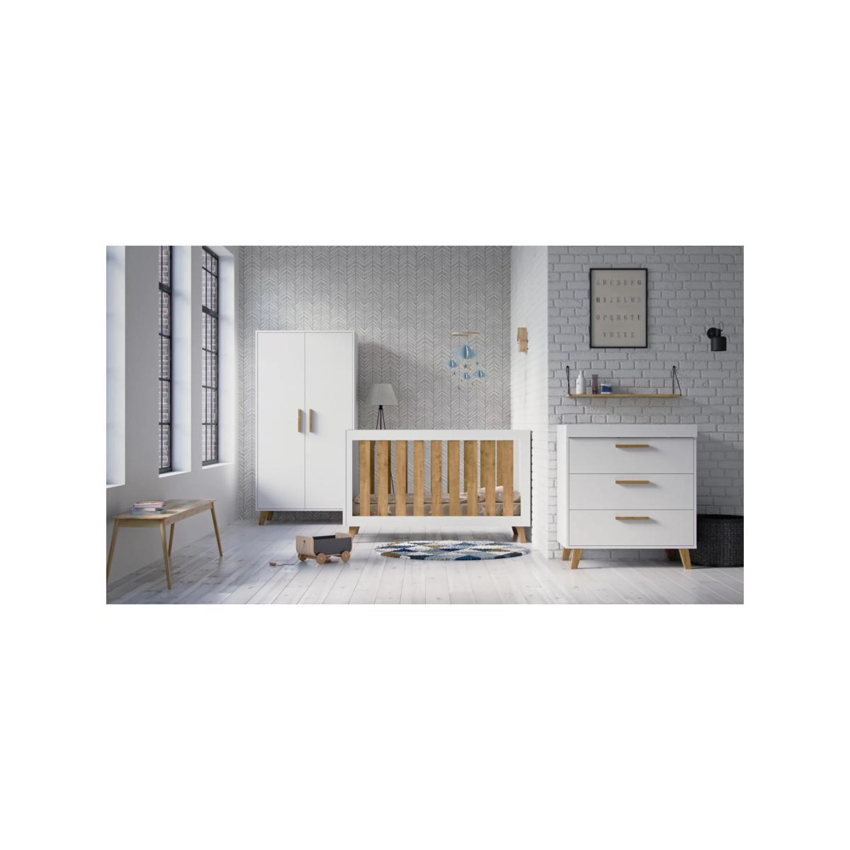 I love the Little Acorns Siriana Double Wardrobe for its clean, minimalist design that can seamlessly suit both modern and Scandi-inspired interiors. Its white and oak finish makes it versatile, pairing well with pastel tones for a gentle nursery look or stronger colours for a more grown-up feel as your child’s space evolves. Practical tips include placing it close to a changing station or mixed with open shelving for easy access to everyday essentials. It works well in both compact and spacious rooms, helping to keep clutter at bay while maintaining a stylish aesthetic. Its understated design also means it won’t dominate the space, making it a flexible piece that grows with your child.