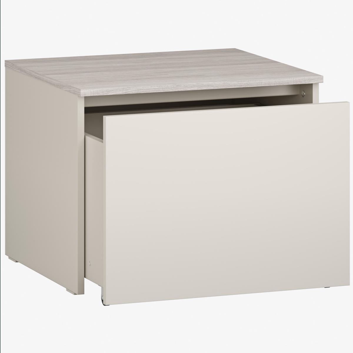 * Ample storage for toys and games* Single drawer with fixed caster wheels* Convertible to play unit* Extremely solid construction* Matching furniture available The Little Acorns Toy Box offers ample storage space for all your little one's toys and games. A large single drawer running on fixed caster wheels provides smooth and effortless operation. The drawer can be removed, allowing the unit to be used for drawing and play. With its extremely solid construction, this toy box is built to withstand the busiest playroom! Matching furniture items are available.