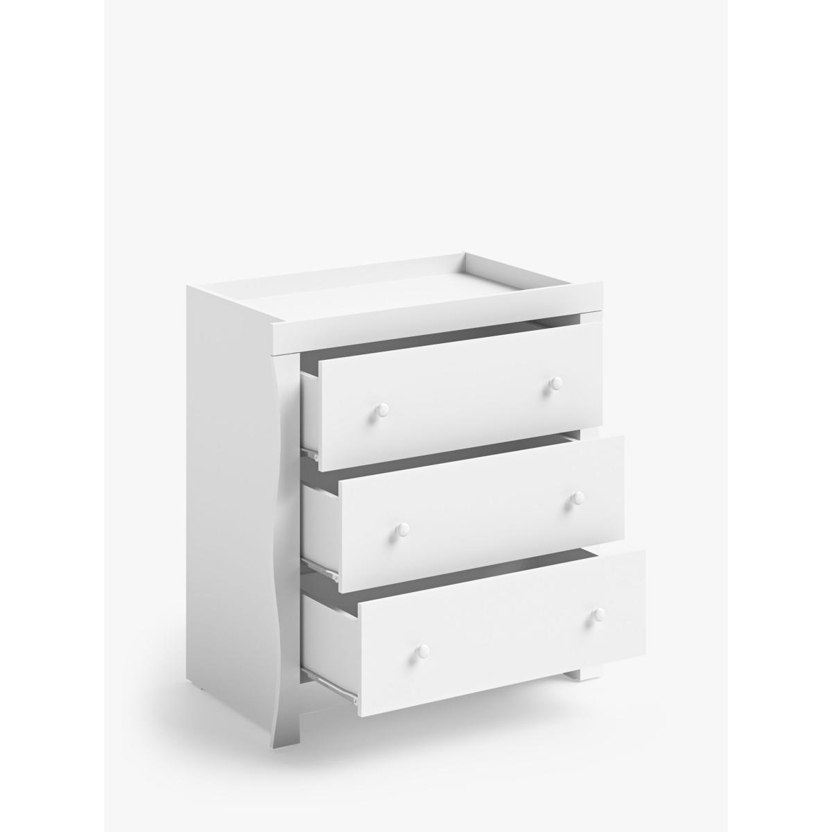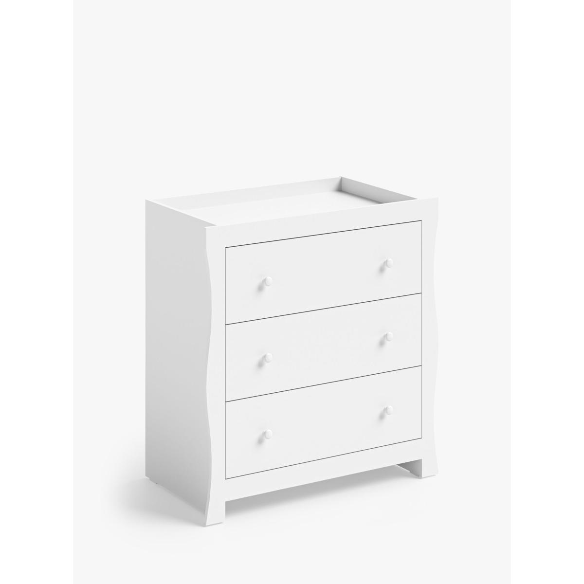 The Little Acorns Traditional Sleigh Dresser makes a great addition to your child's bedroom. Designed with a stunning traditional sleigh curved look, this beautifully crafted dresser and changing unit comes with 3 large, spacious drawers and a baby changing surround. Plus each shelf is 40cm deep giving you ample space of storage. To complete your nursery set, the matching Traditional Sleigh Cotbed and Wardrobe are also available for purchase separately. Good to know: The dresser comes flat packed in two boxes Estimated assembly time is 2.3 hours Two people recommended for assembly but it is possible with one.