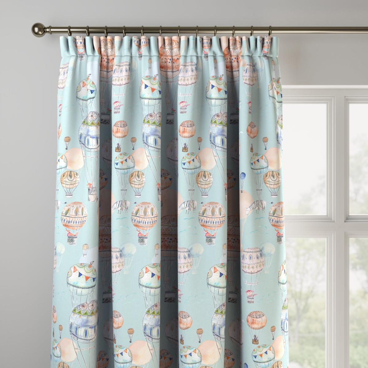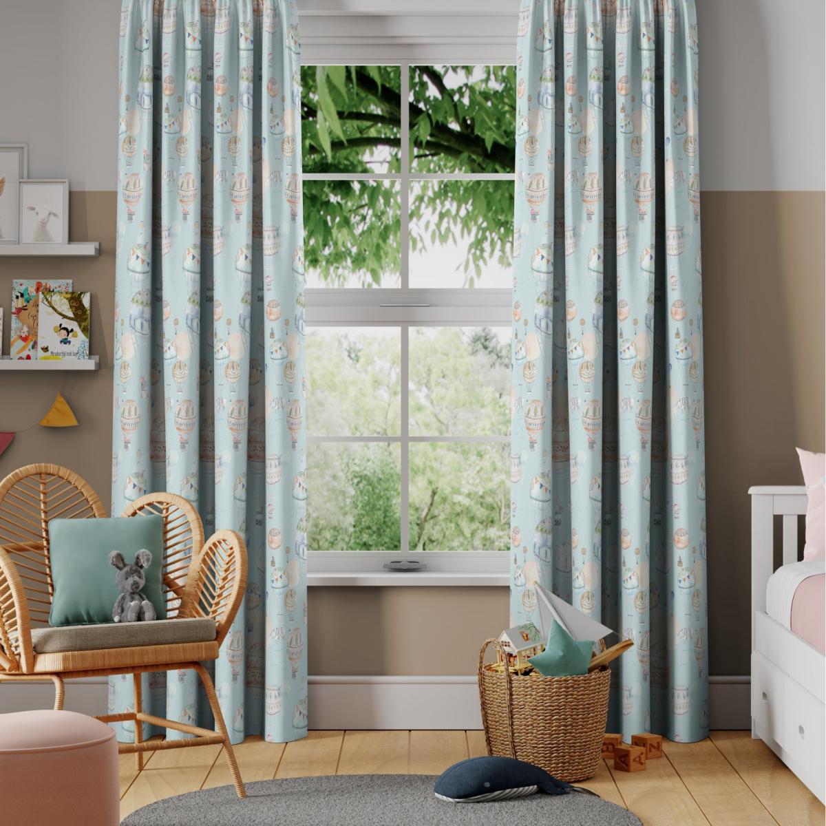 The playful and creative watercolour hot air balloon design of this fabric is wonderfully colourful and digitally printed on 100% cotton. The hot air balloon floats upon a fresh blue ground, inspiring a calming and joyful atmosphere sure to brighten up any room with its wonderful watercolour patterns. Our Web Exclusive Little Adventurers range features 5 playful, unique designs for curtains, upon a 100% cotton fabric base, and includes a wide range of styles. Introducing imagination and creativity into your décor, with designs like Zoo, Unicorn, Jurassic and Hot Air Balloon, will inspire younger minds, and create unique, playful spaces in any room. 100% natural fibres like cotton are kinder to the environment, as well as to our skin, being naturally hypoallergenic, meaning they are ideal for sensitive and allergy-prone skin, as well as having unique anti-bacterial qualities. You can feel confident that our Little Adventurers’ range will be gentle to the environment and inspire the minds of those who find stories within their designs. For windows that cannot wait, shop our range of. Ready Made Curtains. Please note: you measure for pinch pleat curtains in the same way as pencil pleat curtains. Online Only:. This product is only available to order online. Our expert virtual consultants can provide advice on measuring/fitting and style tips and our free samples can be ordered online to be delivered straight to your home to help you choose a fabric that's right for you. Once you're happy, simply place your order online and we'll do the rest.