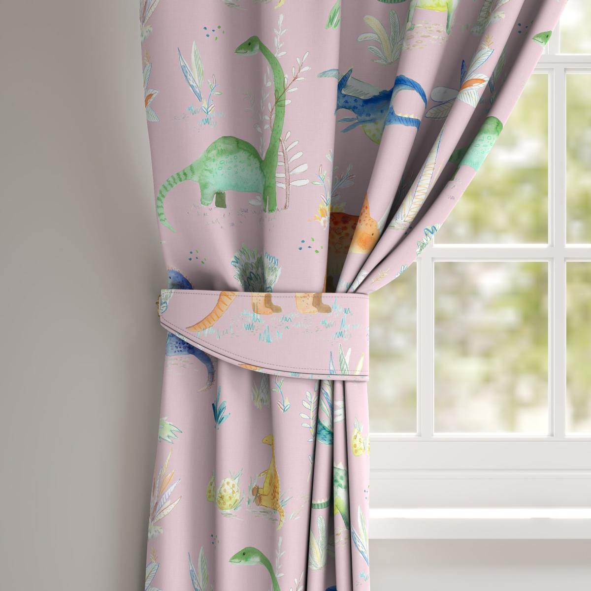 Our tiebacks are crafted with durable materials and is a great way to complement and finish off your Made to Measure curtains. Wonderful and wild, the Little Adventures Jurassic fabric features vibrantly coloured dinosaurs and trees in a hand drawn, watercolour effect. Our Web Exclusive Little Adventurers range features 5 playful, unique designs for curtains, upon a 100% cotton fabric base, and includes a wide range of styles. Introducing imagination and creativity into your décor, with designs like Zoo, Unicorn, Jurassic and Hot Air Balloon, will inspire younger minds, and create unique, playful spaces in any room. 100% natural fibres like cotton are kinder to the environment, as well as to our skin, being naturally hypoallergenic, meaning they are ideal for sensitive and allergy-prone skin, as well as having unique anti-bacterial qualities. You can feel confident that our Little Adventurers’ range will be gentle to the environment and inspire the minds of those who find stories within their designs. Please note:. Our Made to Measure Tieback is sold as a single, for a pair you will need to add 2 to your basket. Need some support with your creating Made to Measure tieback? Feel free to book an appointment with one of our experts. Just. Online Only:. This product is only available to order online. Our expert virtual consultants can provide advice on measuring/fitting and style tips and our free samples can be ordered online to be delivered straight to your home to help you choose a fabric that's right for you. Once you're happy, simply place your order online and we'll do the rest.