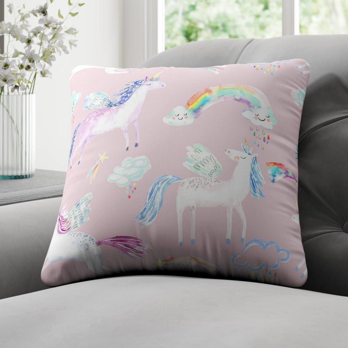 Our cushion covers are crafted with durable materials and is a great way to complement and finish off your made to measure curtains. This full of life design gives centre stage to a pretty, playful unicorn and rainbow design on a complementing light pink ground. Our Web Exclusive Little Adventurers range features 5 playful, unique designs for curtains, upon a 100% cotton fabric base, and includes a wide range of styles. Introducing imagination and creativity into your décor, with designs like Zoo, Unicorn, Jurassic and Hot Air Balloon, will inspire younger minds, and create unique, playful spaces in any room. 100% natural fibres like cotton are kinder to the environment, as well as to our skin, being naturally hypoallergenic, meaning they are ideal for sensitive and allergy-prone skin, as well as having unique anti-bacterial qualities. You can feel confident that our Little Adventurers’ range will be gentle to the environment and inspire the minds of those who find stories within their designs. Online Only: This product is only available to order online. Our expert virtual consultants can provide advice on measuring/fitting and style tips and our free samples can be ordered online to be delivered straight to your home to help you choose a fabric that's right for you. Once you're happy, simply place your order online and we'll do the rest.