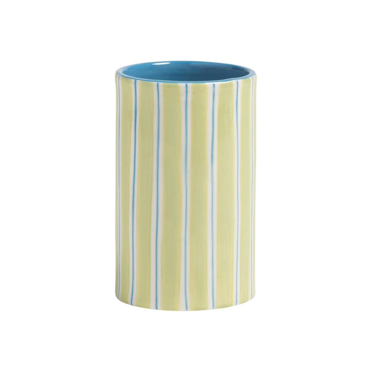 Imagine a vase that captures the playful spirit of a summer coastline, with hand-painted stripes between blue and green like waves meeting the shore. Crafted from porcelain and standing a chic 12.5cm tall, this versatile beauty is ready to hold wild garden blooms or kitchen utensils, turning everyday moments into little works of art.