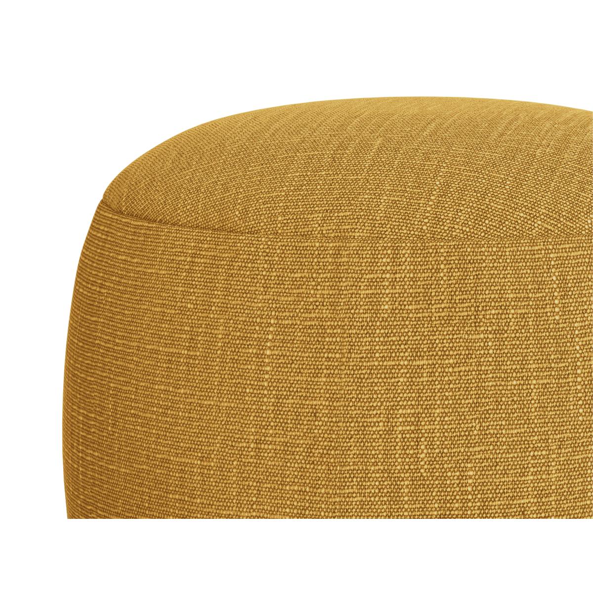 I love this little cheese for its versatile shape and warm colour, making it a great addition to both contemporary and more relaxed interiors. It works particularly well in casual living rooms, reading nooks, or even in bedrooms as a footrest or extra seating option. The textured fabric adds visual interest and makes it forgiving of everyday use. For styling tips, consider pairing it with natural materials like wood or woven accents to enhance a cosy, inviting vibe. It also spots well with patterned textiles or neutral palettes, adding a pop of colour without overwhelming the space. Practical and good-looking, it’s an easy way to add a touch of personality and functionality to a range of rooms.