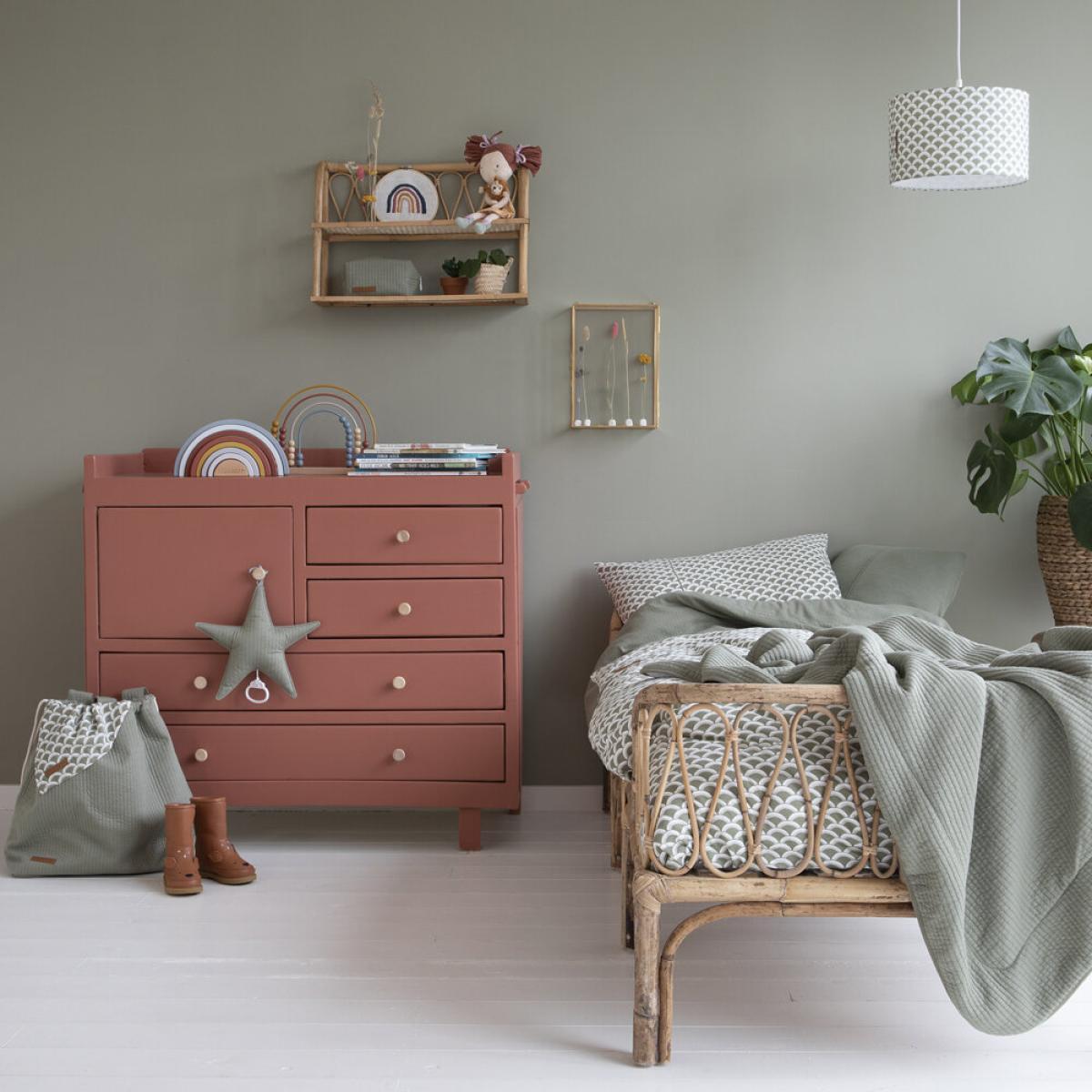 Add the perfect finishing touch to your little one's space with this ceiling light from Little Dutch. Available in a dusty blue or blush pink it features a delicate floral design in a crisp white. Complete with a cord and pendant include, it's a wonderful addition to any nursery or playroom. Key features: * Material: polyester, PVC, metal * Dimensions: Ø30xH20cm * Olive green colour * With delicate white detailing * Cord and pendant included * Light bulb not included