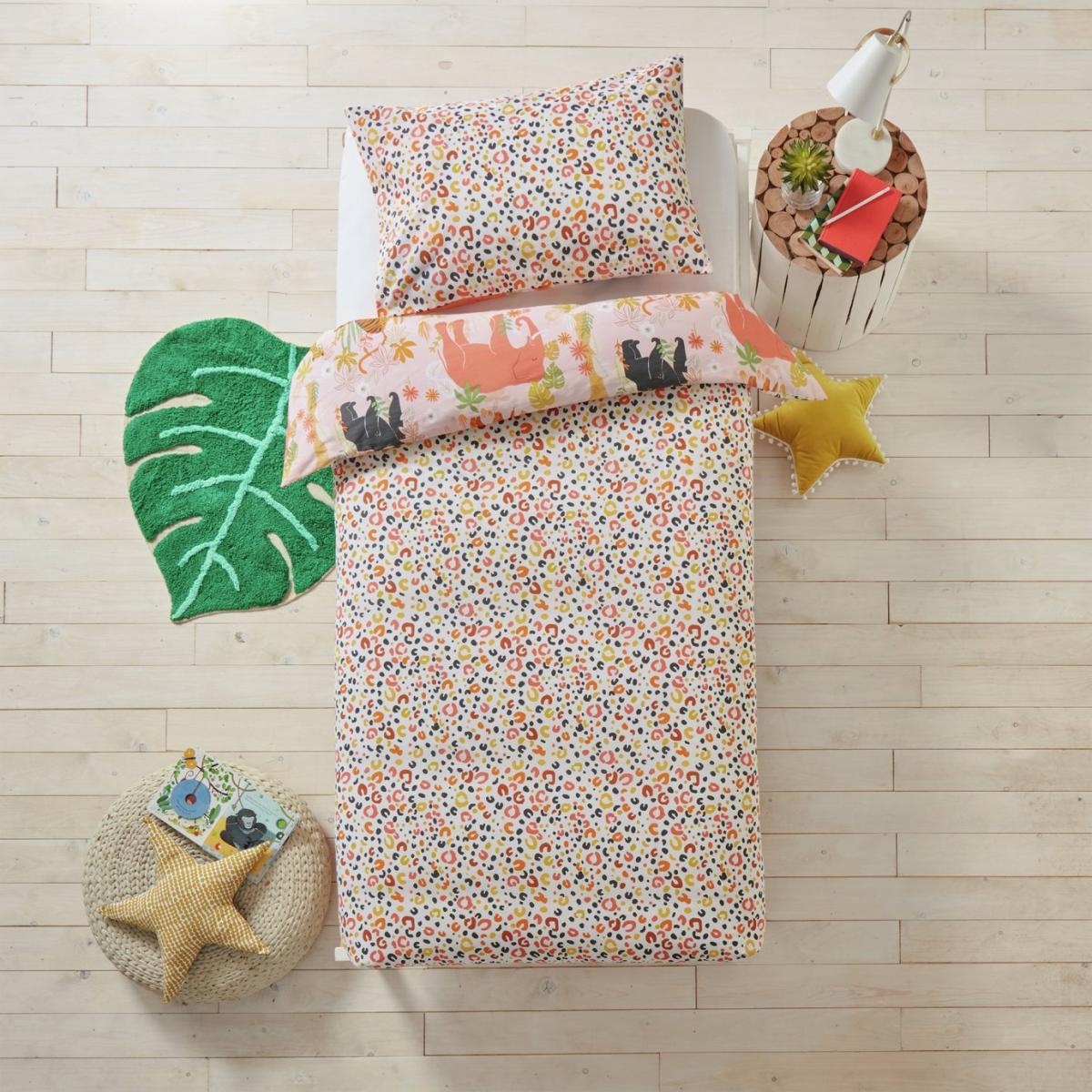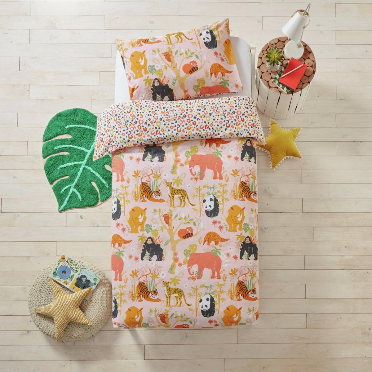 Add instant personality to your bedroom with this vibrant and exotic safari-themed print, bringing together endangered animals amongst beautiful foliage and flowers. A fully reversible design, so you can switch the look when you need to. Set comprises of 1 duvet cover and 1 pillowcase. Multicoloured animals pattern. Size L200 x W137cm. Pillow case length 75cm, Width 50cm. Standard pillowcase (s). Reversible pillowcase (s). Reversible. Buttons for fastening. Machine washable. Suitable for tumble drying. 100% cotton. 144 thread count.