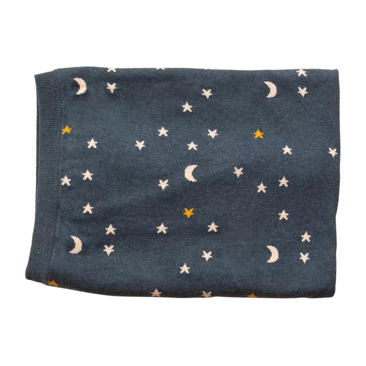 Little Green Radicals Baby Organic Cotton Star & Moon Blanket, Navy