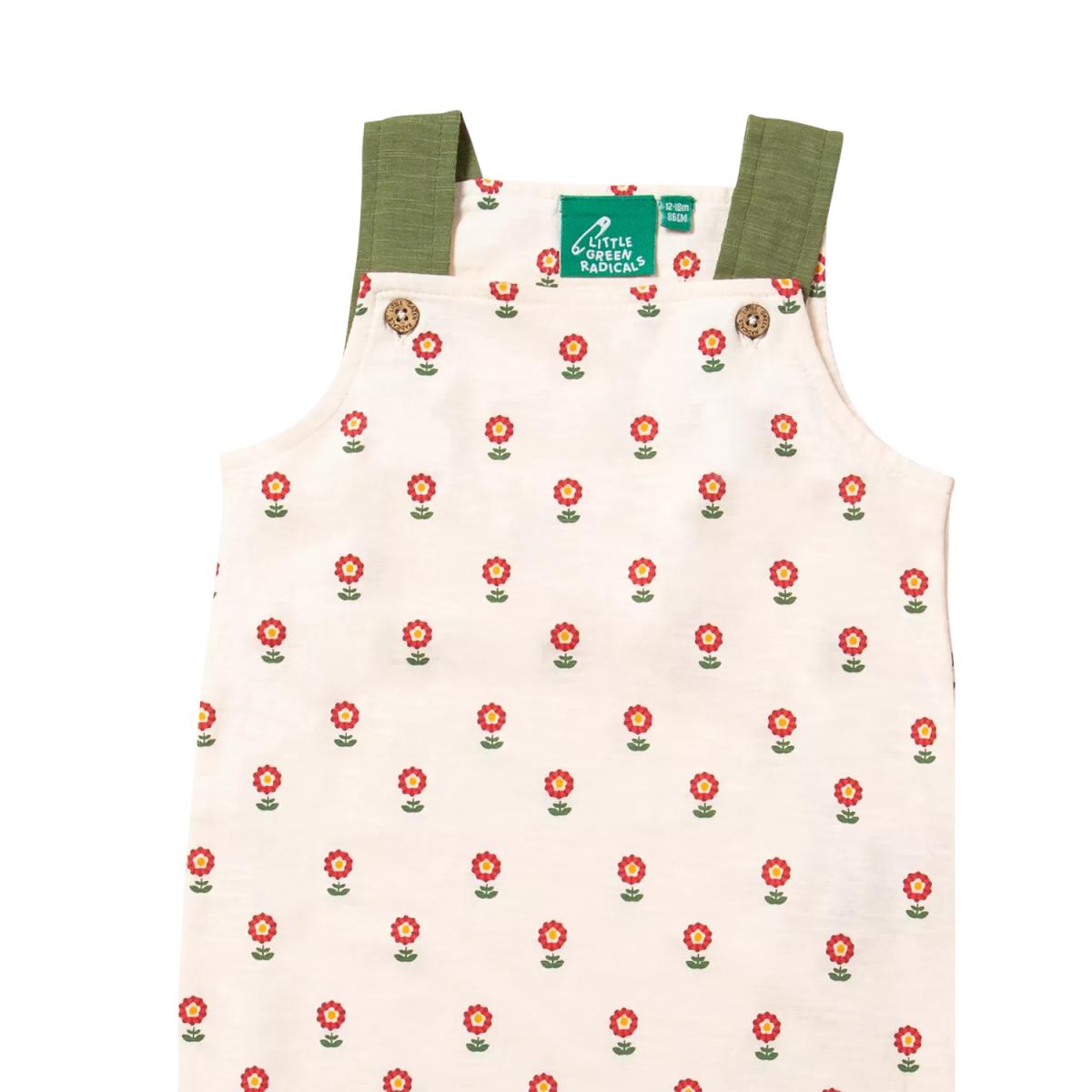 Little Green Radicals Kids' Flowers Dungarees, Cream/Multi