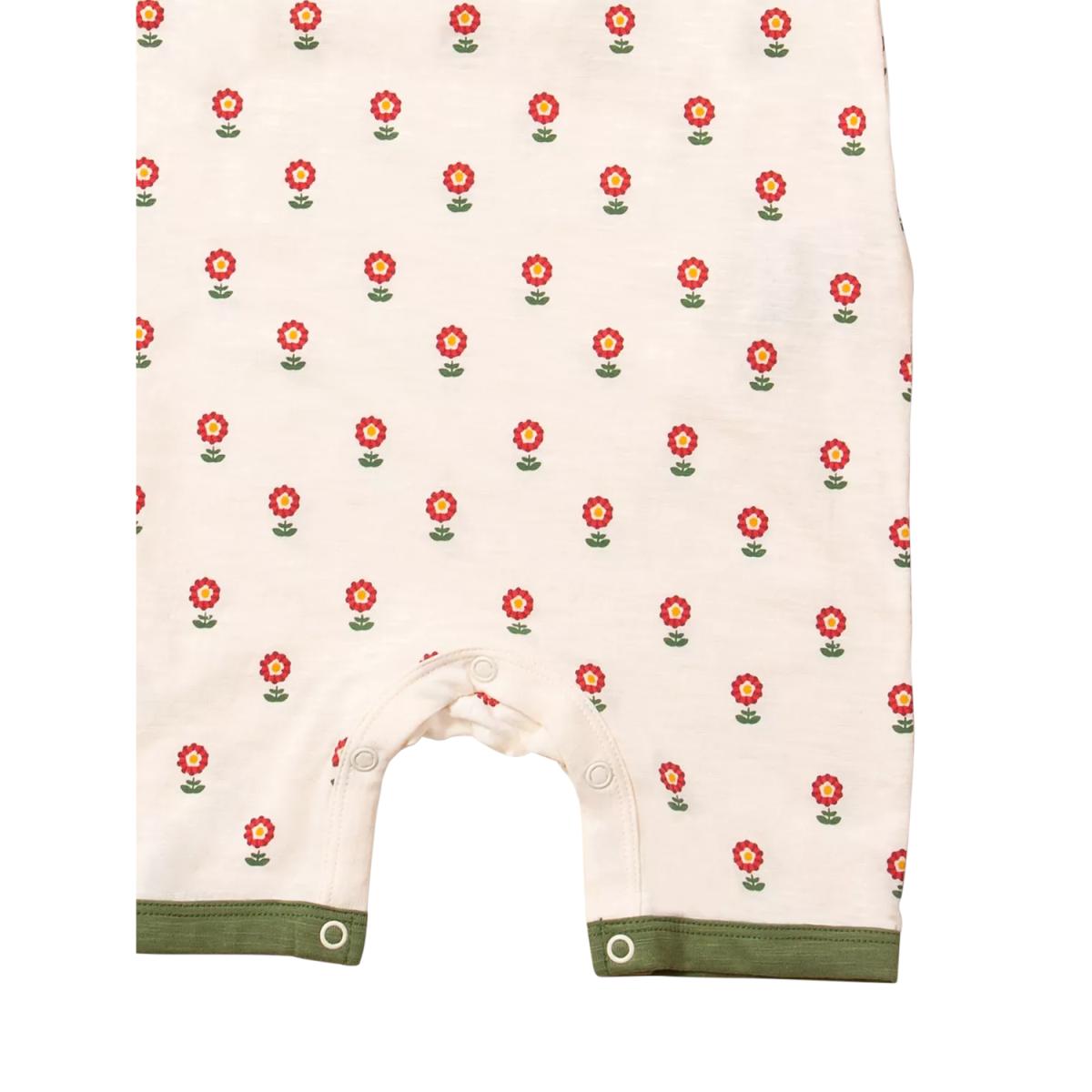 More about these red flowers storytime Dungaree Shorts. Time for adventure! These summery dungaree shorts are made from soft, breathable fabric, perfect for little explorers on hot summer days. Layer with a soft, organic top on cooler days.