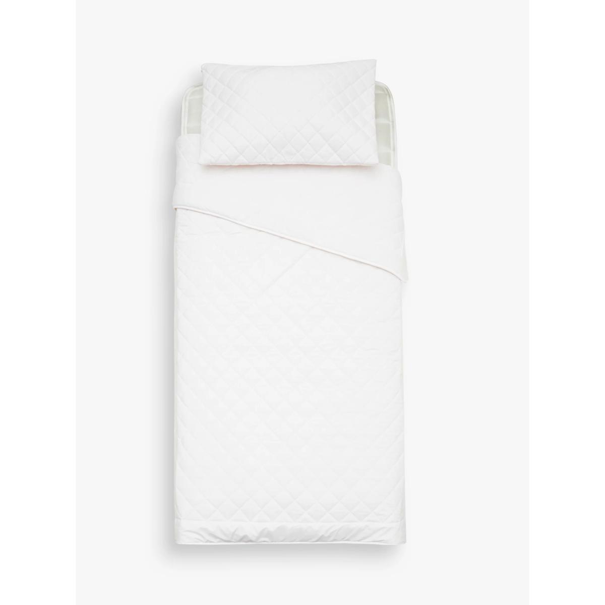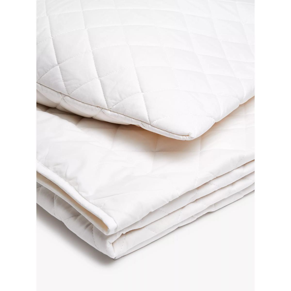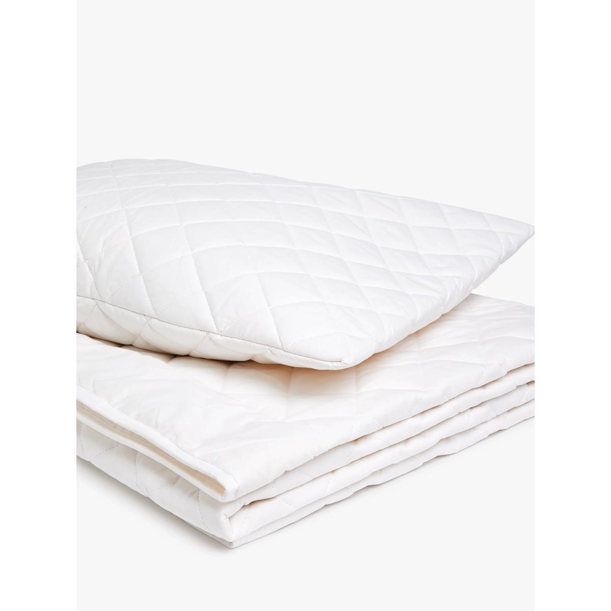 Good for cold sleepers With a 100% certified British wool filling, this single duvet and pillow set is a luxurious option for your child's bed. The pure wool filling is not bleached or chemically treated and features a unique needling technique which finely combs each fibre for a lofty feel. The pure cotton cover also ensures a naturally breathable feel while they sleep, as well as providing anti allergy benefits. Temperature Regulating Luxurious wool and natural cotton are naturally temperature regulating and breathable. They keep the heat in when nights are cold, and let it out when they’re hot. More Sustainably Sourced We always strive to obtain raw materials from more sustainable sources. This product supports cotton farmers who use water efficiently, care for the environment and promote fair and decent work.