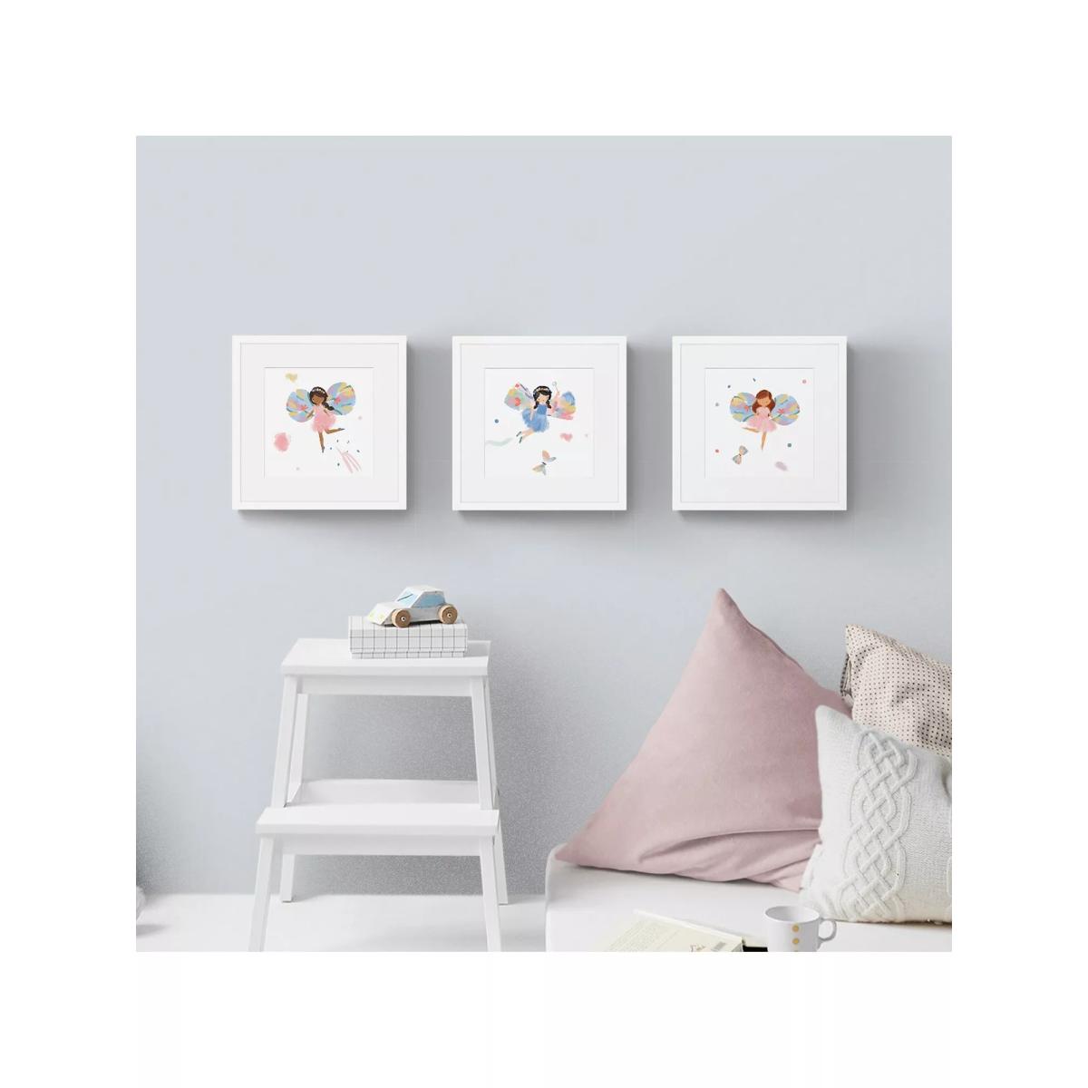 I love this little home fairy print gallery set because of its charming, playful aesthetic that’s perfect for nurseries or children's bedrooms. The three-piece design creates a lovely visual impact while remaining flexible to incorporate into various wall layouts. It works particularly well in light, neutral interiors or pastel-themed schemes, adding a touch of whimsy without overwhelming the space. Practical styling tips include grouping these prints at child’s eye level or creating a cluster above a bed or changing station. To keep the look fresh, pair with simple furniture and subtle textiles-this will ensure the artwork remains a focal point while maintaining a calming, inviting atmosphere.